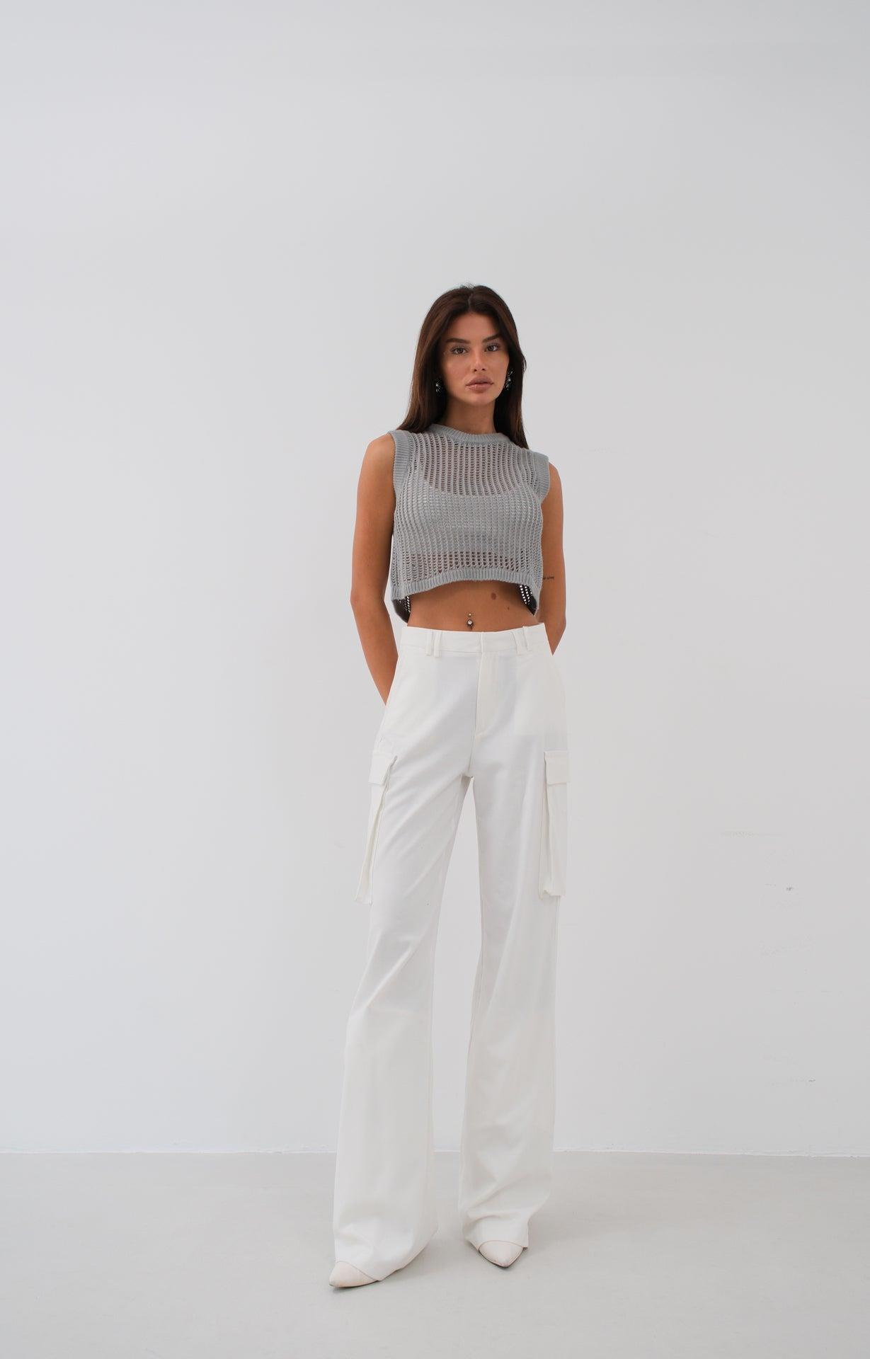 Ajurlu Triko Örgü, Kalın Askılı, Sıfır Yaka, Crop, Süveter Manken Ölçüleri : Göğüs : 89 cm Bel : 68 cm Basen : 95 cm Manken Boy : 177 cm Kilo : 57 kg Manken üzerindeki M bedendir. Ürün İçeriği : 100 Akrilik Ürün Kodu : 24S20001