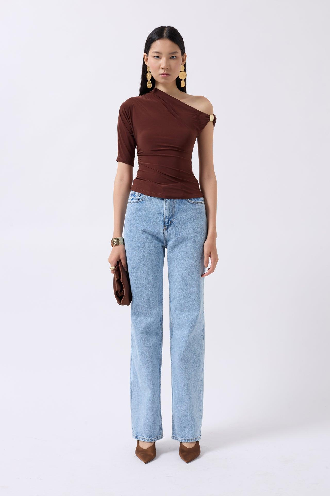 Aksesuar Detay Cutout Kahverengi Bluz ()
