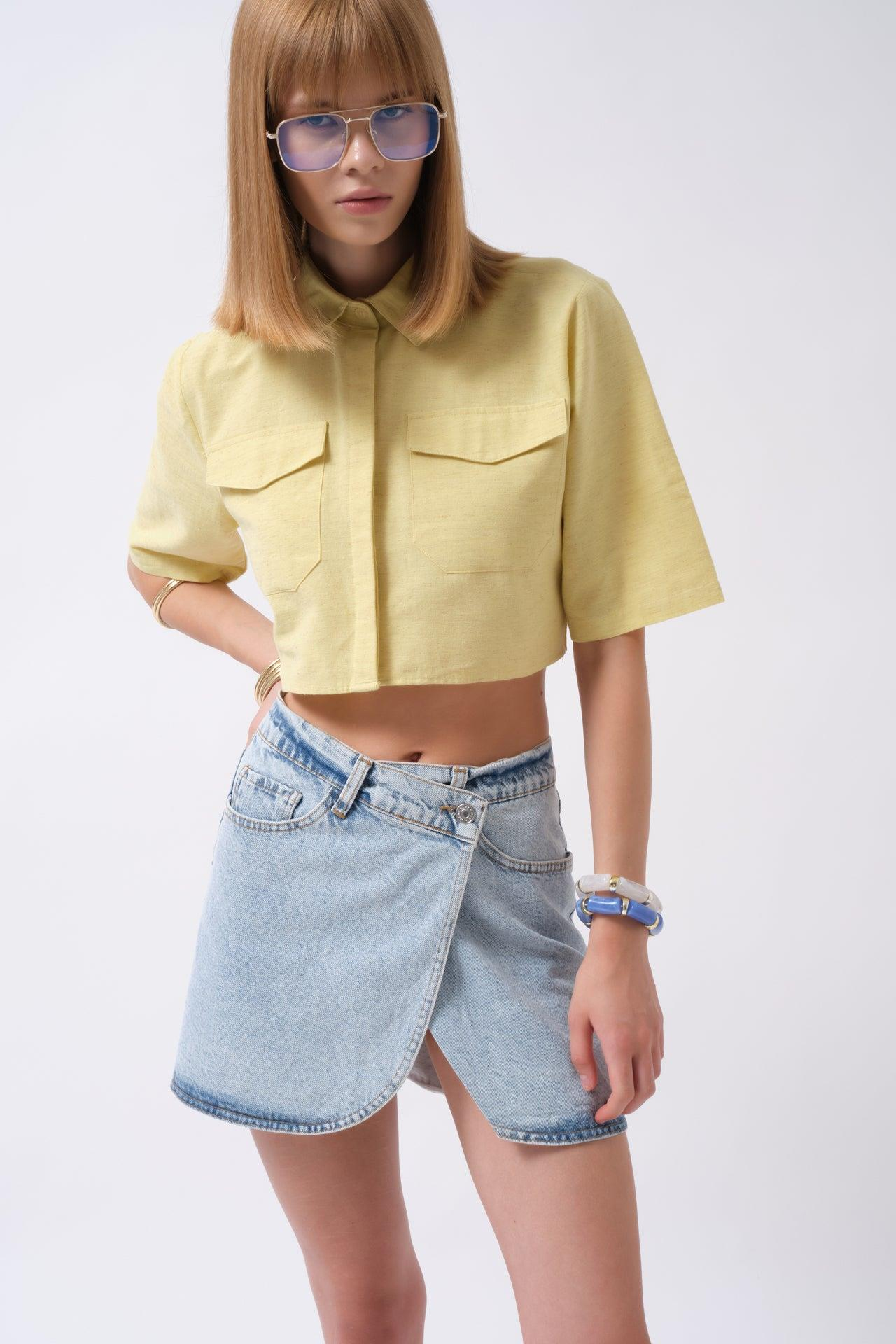 Anvelop Denim Mini Açık Mavi Etek
