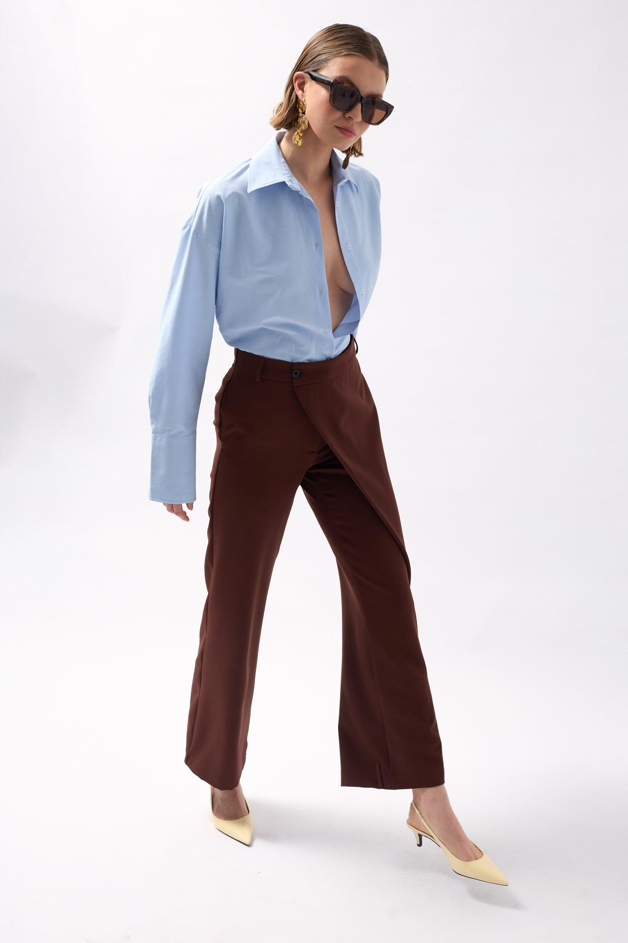 Anvelop Detay Asimetrik Kahverengi Pantolon