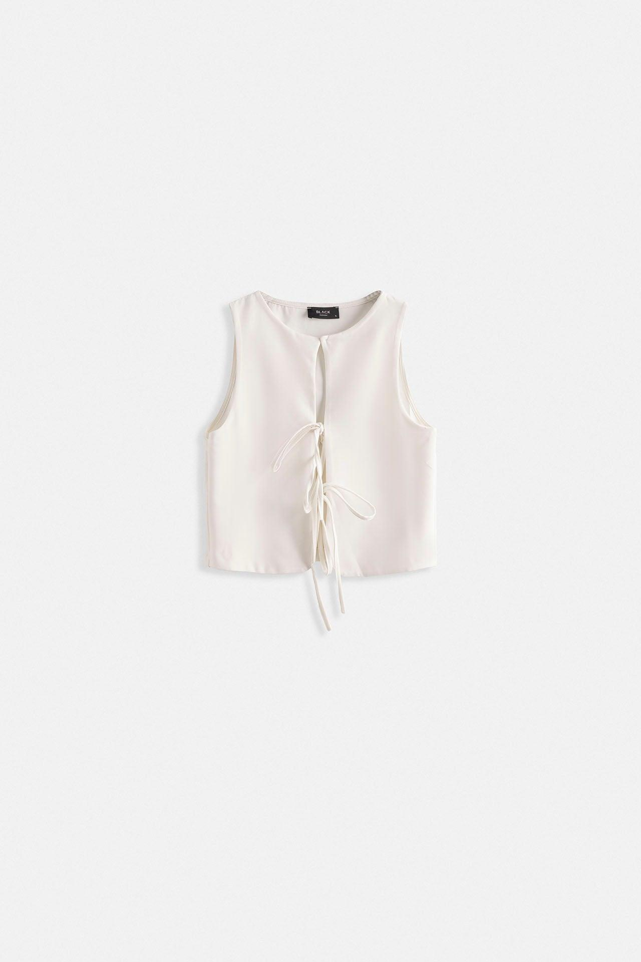 Bağcık Detay Dekolte Beyaz Bluz ()