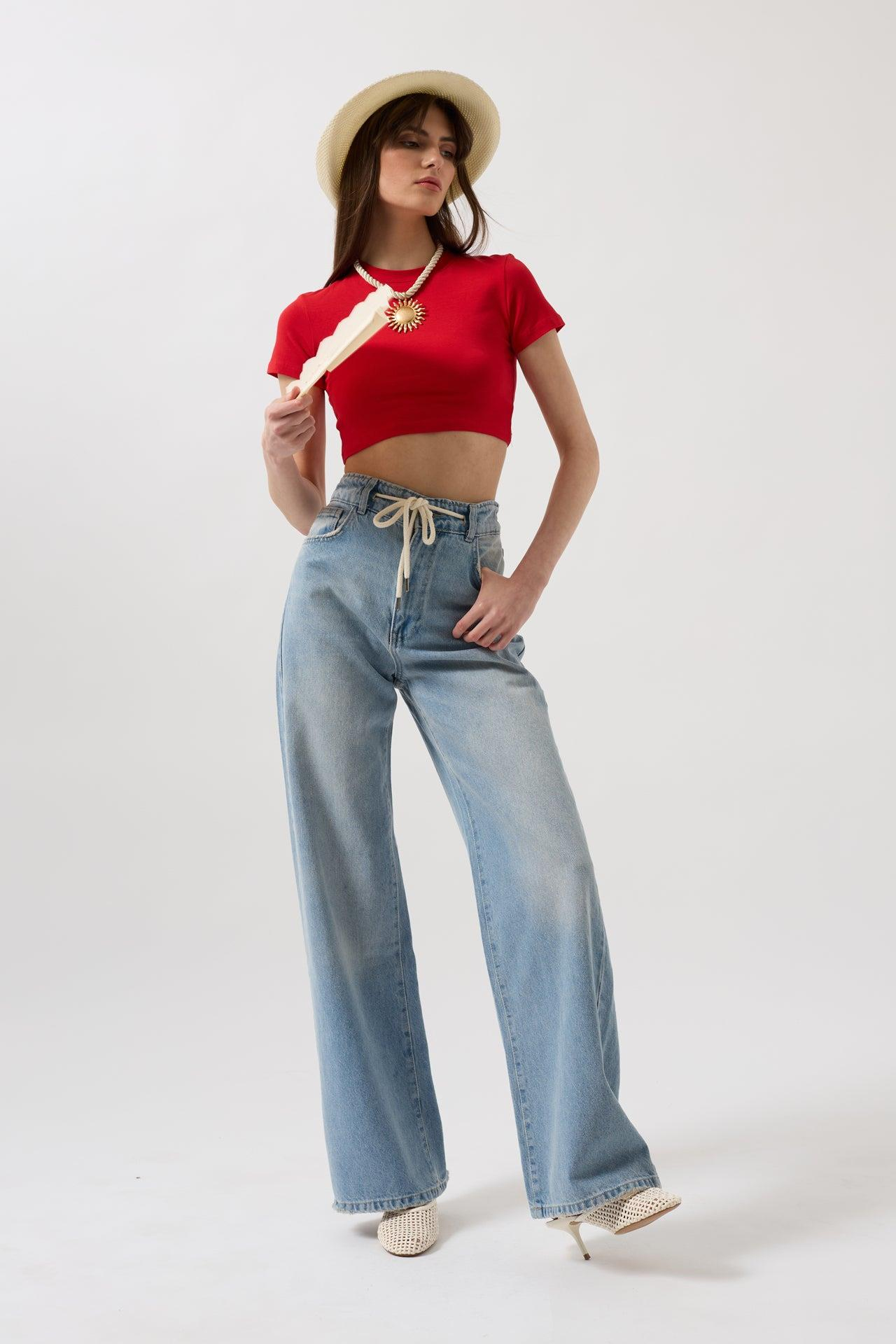 Bağcık Detay Yüksek Bel Açık Mavi Jean ()