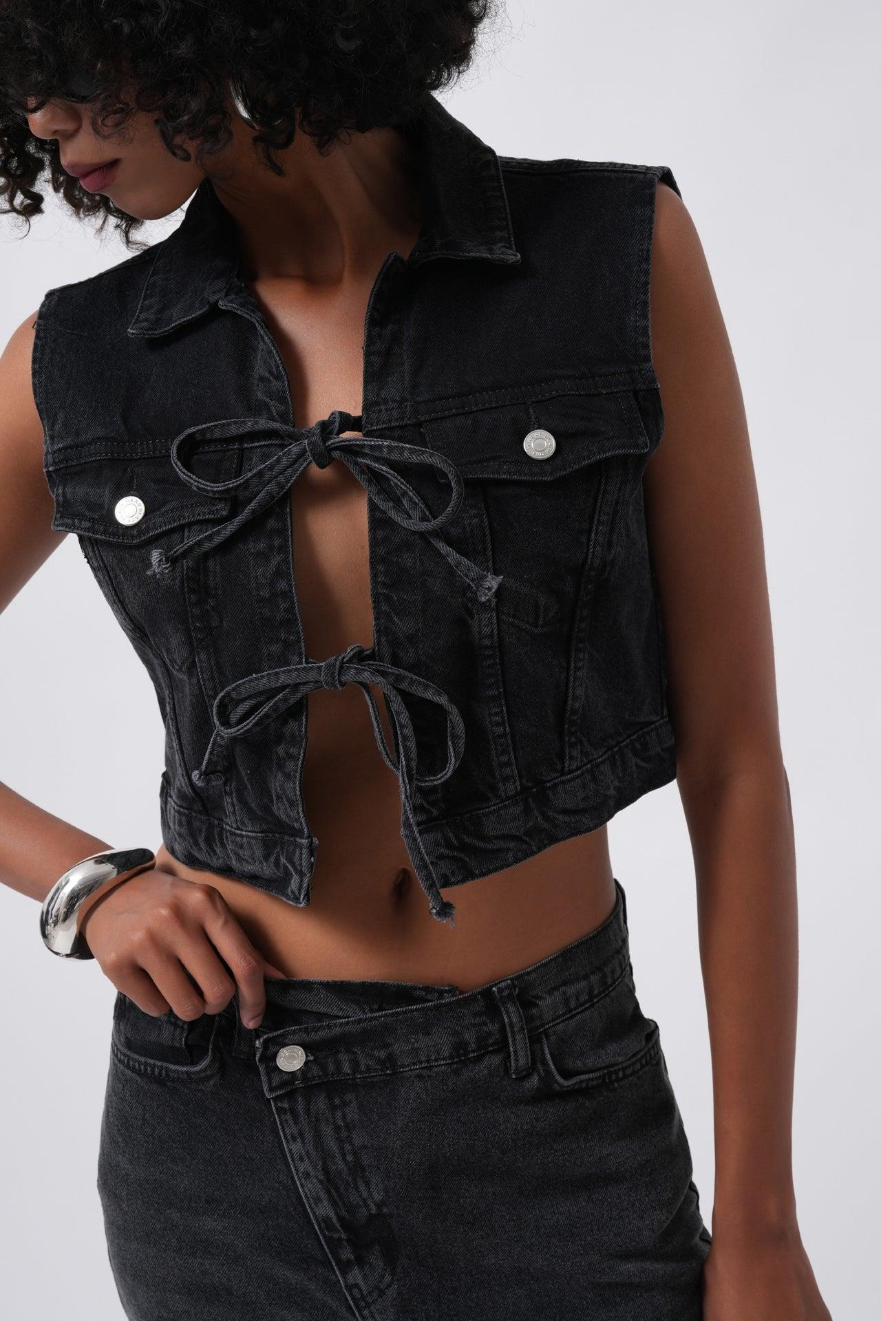 Gömlek Yaka Formlu, Fiyonk Detaylı Bağlamalı, Çift Cepli, Çift Düğmeli Denim Yelek Manken Ölçüleri : Göğüs : 80 cm Bel : 62 cm Basen : 88 cm Manken Boy : 180 cm Kilo : 64 kg Manken üzerindeki S bedendir. Ürün İçeriği : 100 Pamuk Ürün Kodu : 52212018