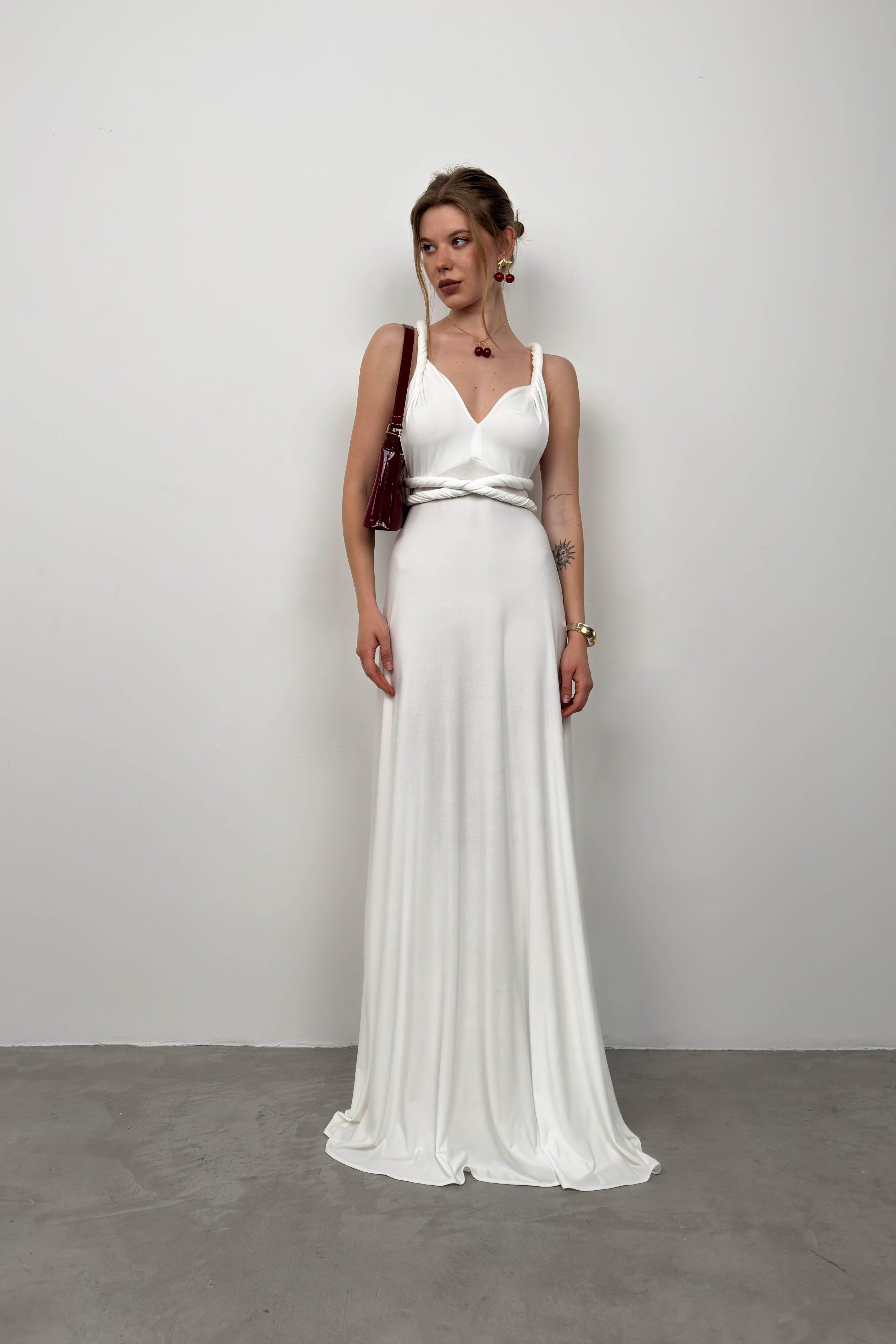 Bağlama Detay, Kalın Askılı, Kuşaklı, Sırt Dekolteli, Maxi Elbise Manken Ölçüleri : Göğüs : 85 cm Bel : 62 cm Basen : 91 cm Manken Boy : 173 cm Kilo : 50 kg Manken üzerindeki S bedendir. Ürün İçeriği : 95 Polyester 5 Elestan Ürün Kodu : 24S25034