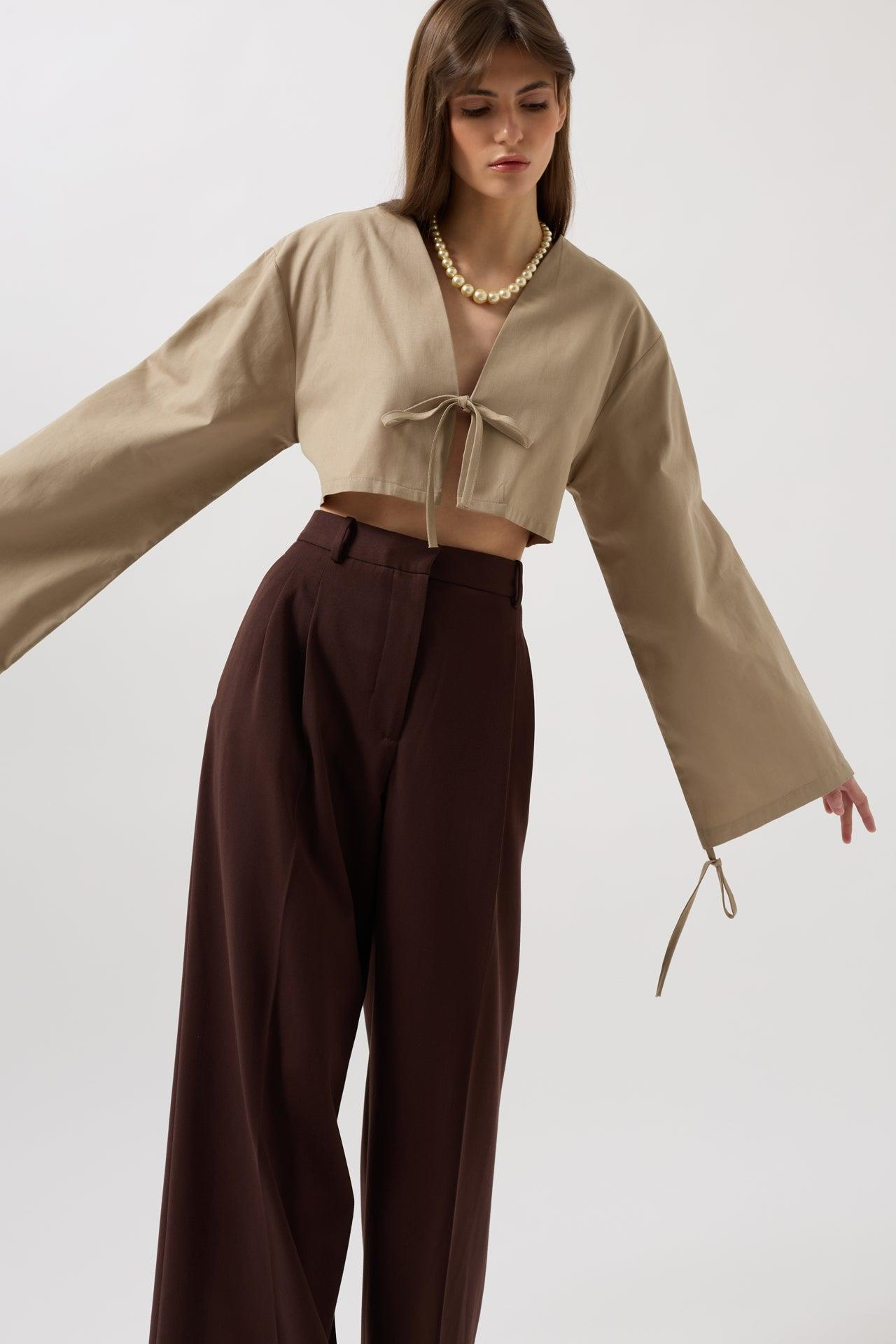 Bağlama Detay Uzun Kol Bej Bluz ()
