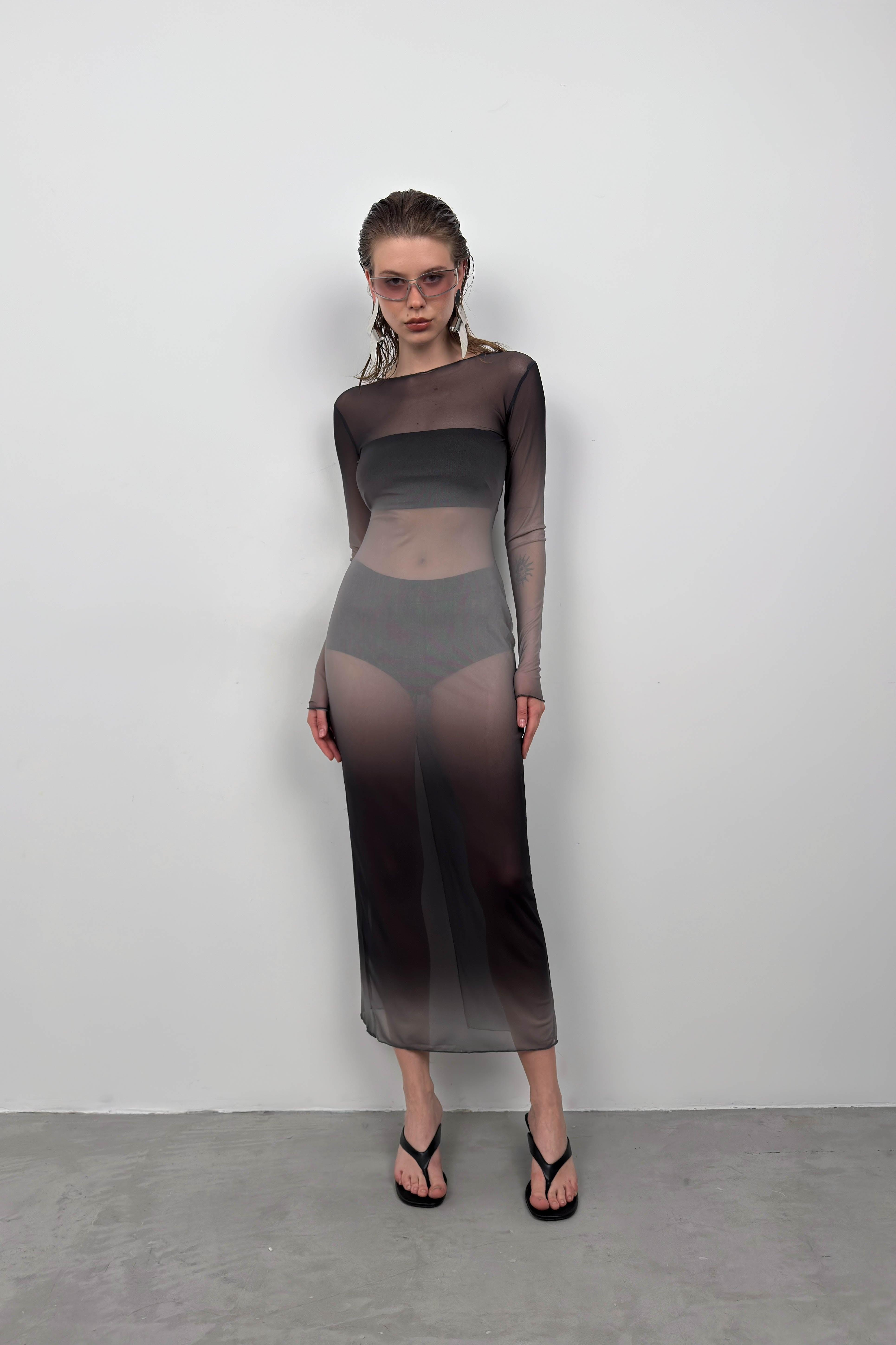 Baskılı Likralı Transparan Kumaş, Uzun Kollu, Sıfır Yaka, Maxi Boy Elbise Manken Ölçüleri : Göğüs : 85 cm Bel : 62 cm Basen : 91 cm Manken Boy : 173 cm Kilo : 50 kg Manken üzerindeki S bedendir. Ürün İçeriği : 90 Polyester 10 Elastan Ürün Kodu : 24S25030