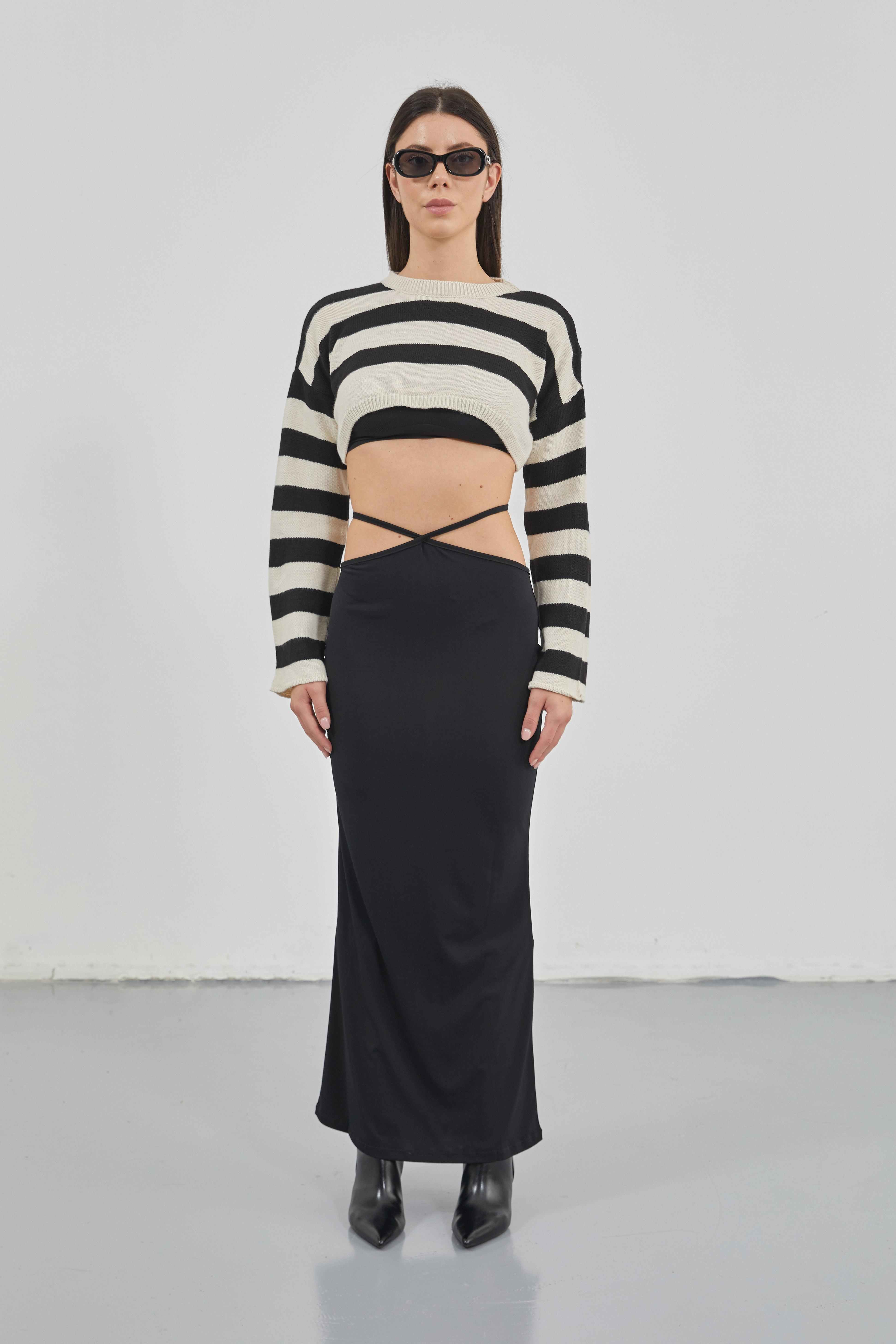 Beli Bağcık Detaylı, Yumuşak Likralı Kumaş Uzun Etek Manken Ölçüleri : Göğüs : 80 cm Bel : 61 cm Basen : 90 cm Manken Boy : 176 cm Kilo : 53 kg Manken üzerindeki S bedendir. Ürün İçeriği : 95 Polyester 5 Elestan Ürün Kodu : 52202047