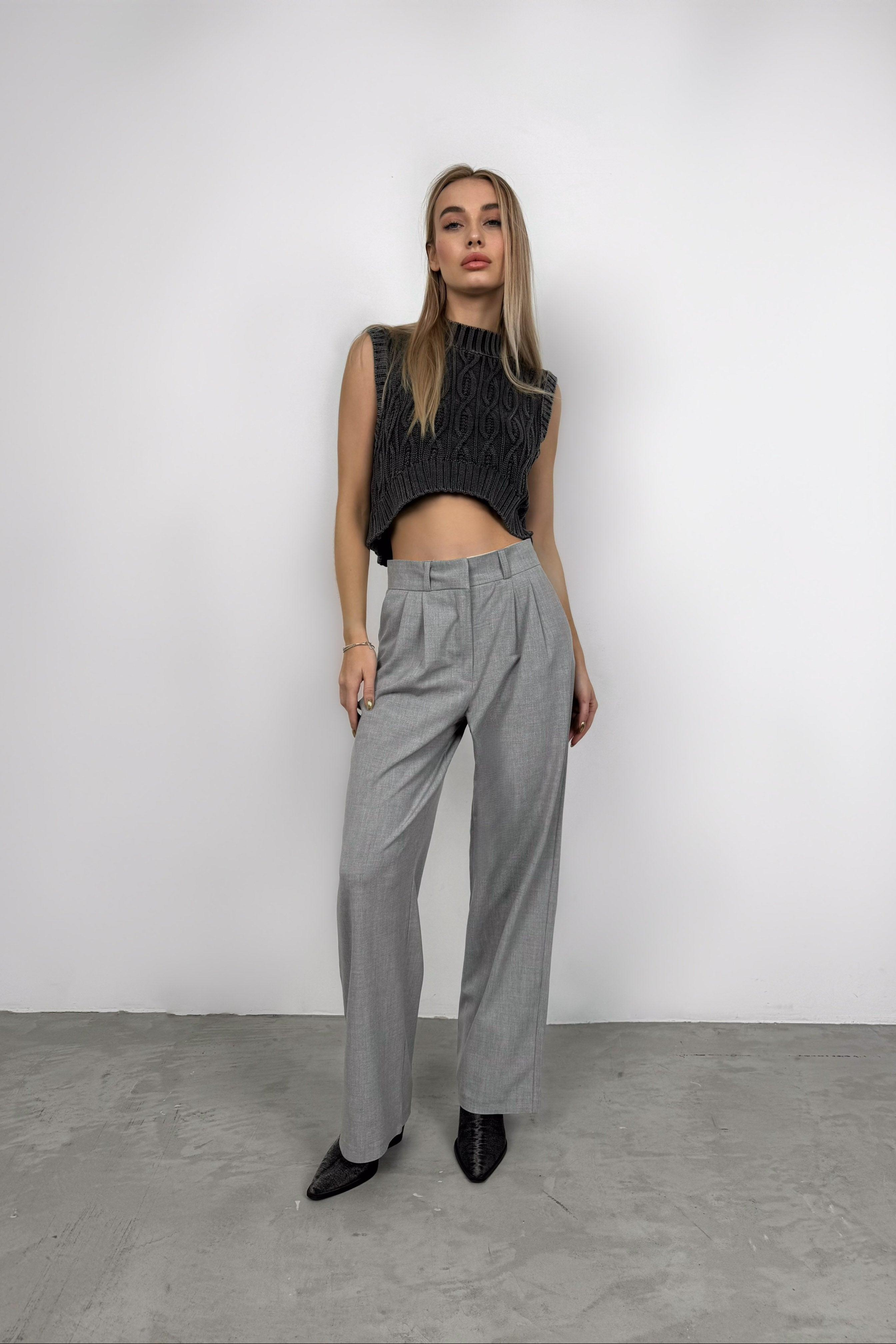 Bel Katlamalı Açık Gri Palazzo Pantolon ()