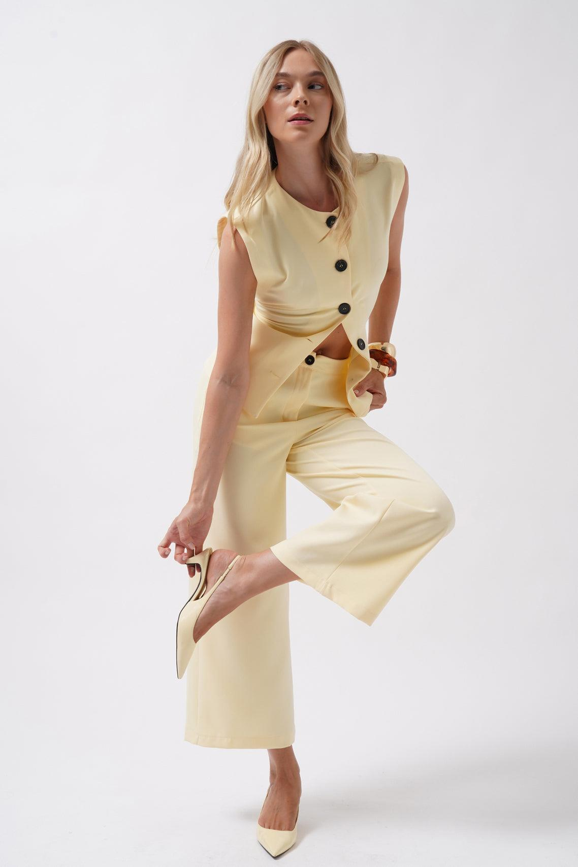 Tek Düğmeli Ve Fermuarlı, Çift Cepli, Bol Paça Kısa Pantolon Manken Ölçüleri : Göğüs : 82 cm Bel : 63 cm Basen : 93 cm Manken Boy : 175 cm Kilo : 59 kg Manken üzerindeki S bedendir. Ürün İçeriği : 97 Polyester 3 Elastan Ürün Kodu : 52201026