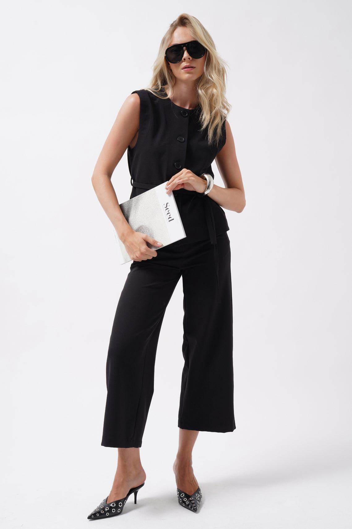Tek Düğmeli Ve Fermuarlı, Çift Cepli, Bol Paça Kısa Pantolon Manken Ölçüleri : Göğüs : 82 cm Bel : 63 cm Basen : 93 cm Manken Boy : 175 cm Kilo : 59 kg Manken üzerindeki S bedendir. Ürün İçeriği : 97 Polyester 3 Elastan Ürün Kodu : 52201026