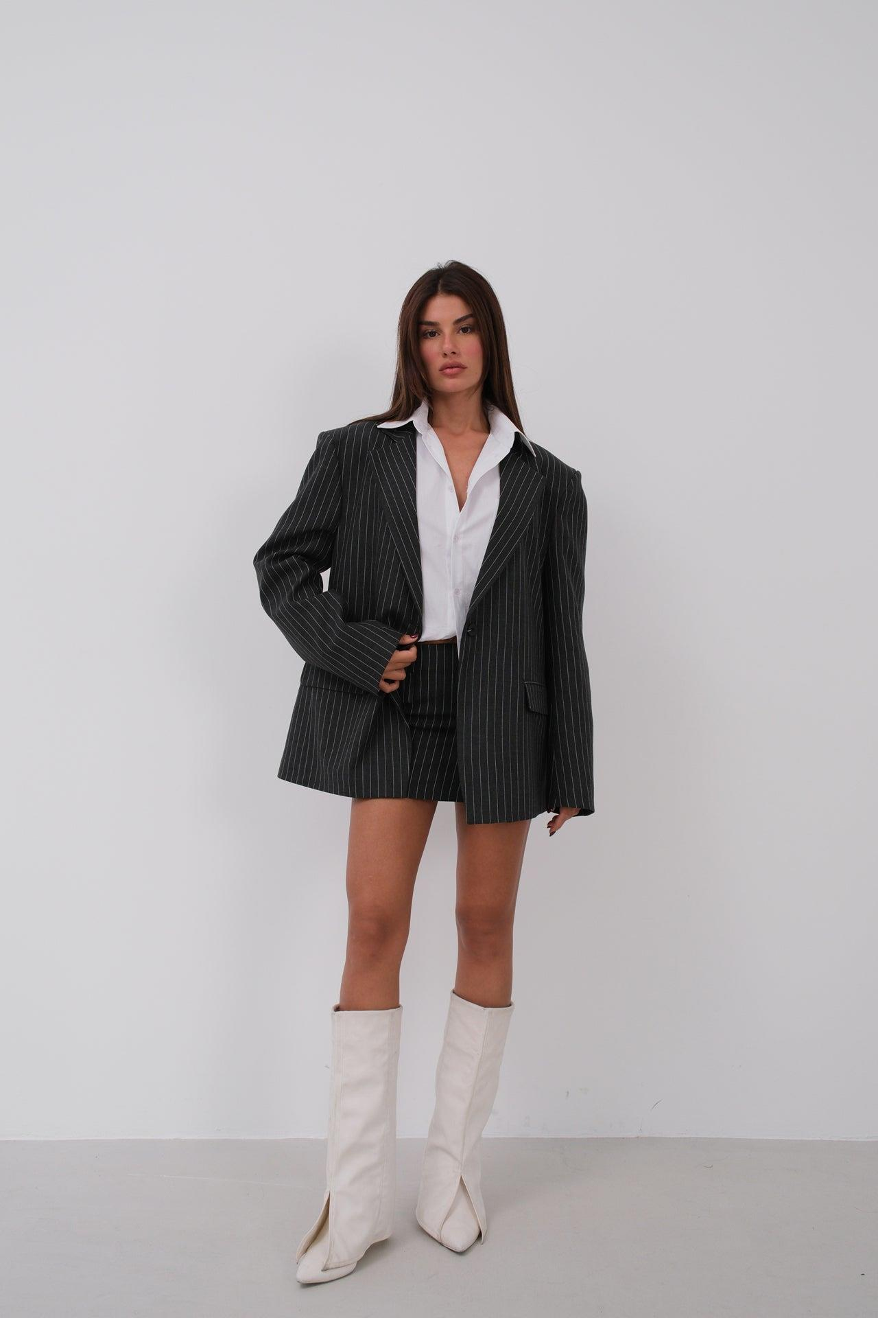 Cepli Çizgili Mini Koyu Gri Etek ()