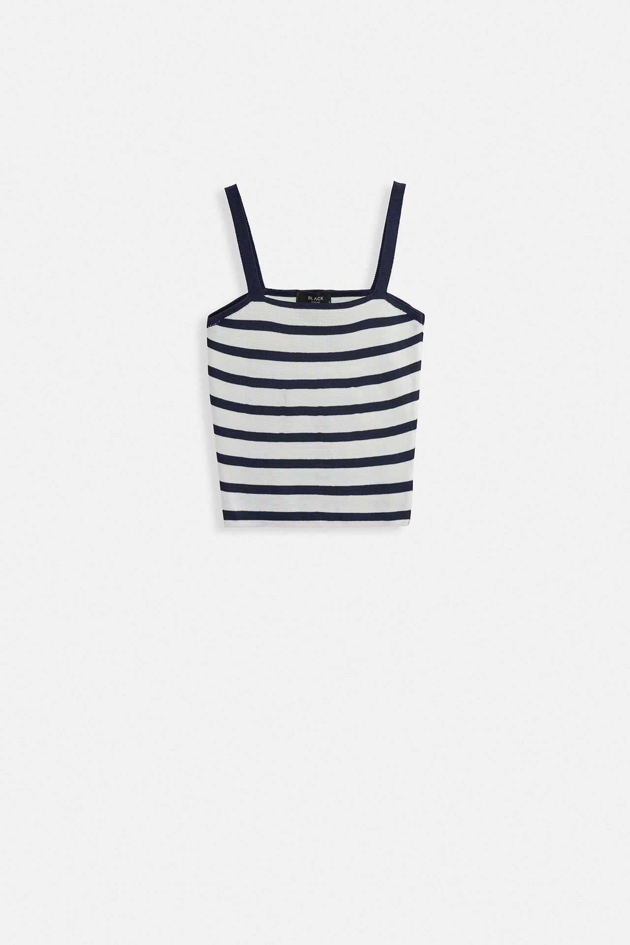 Çizgili Askılı Beyaz-Lacivert Bluz ()
