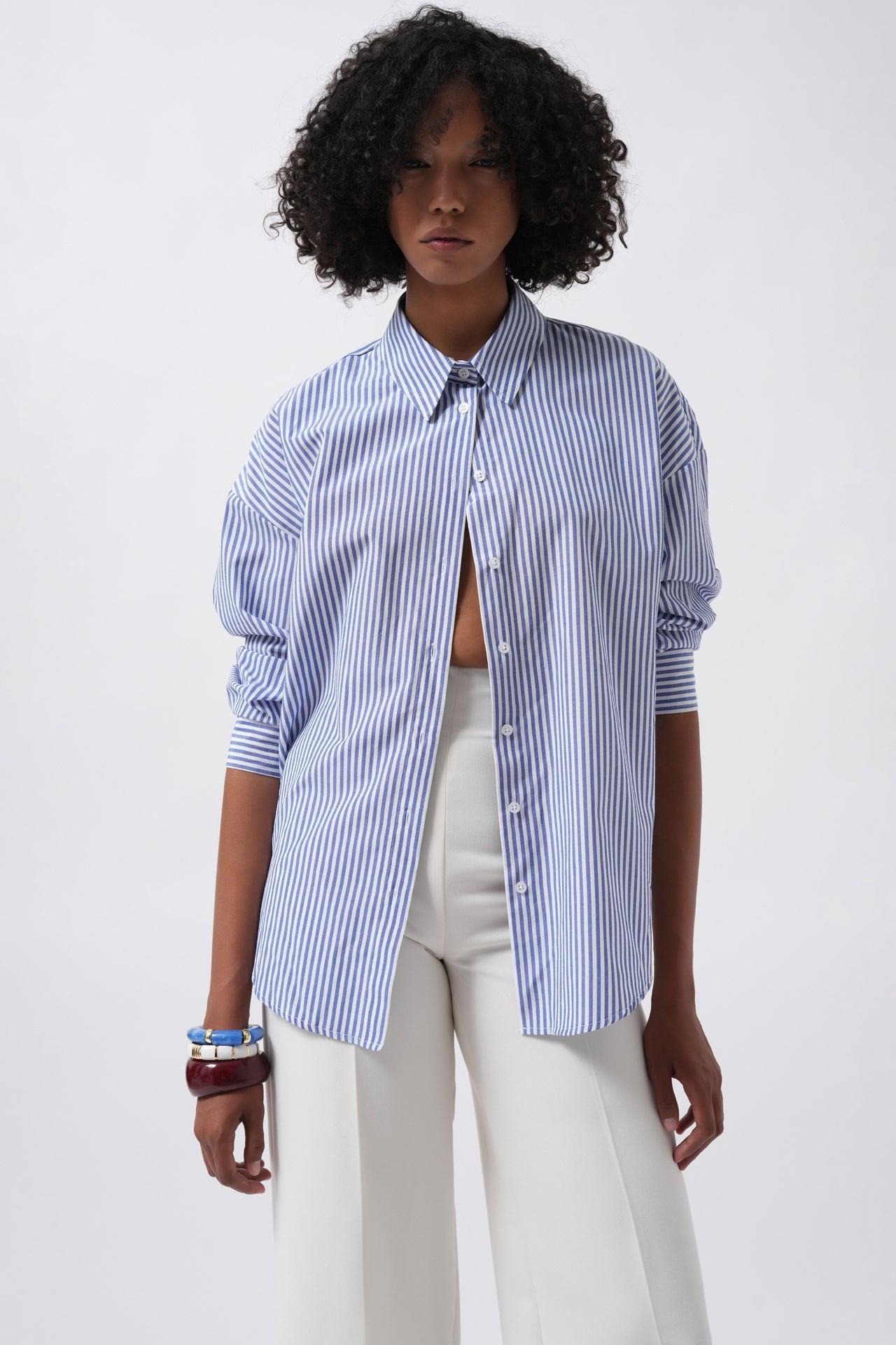 Çizgili Basic Mavi Gömlek