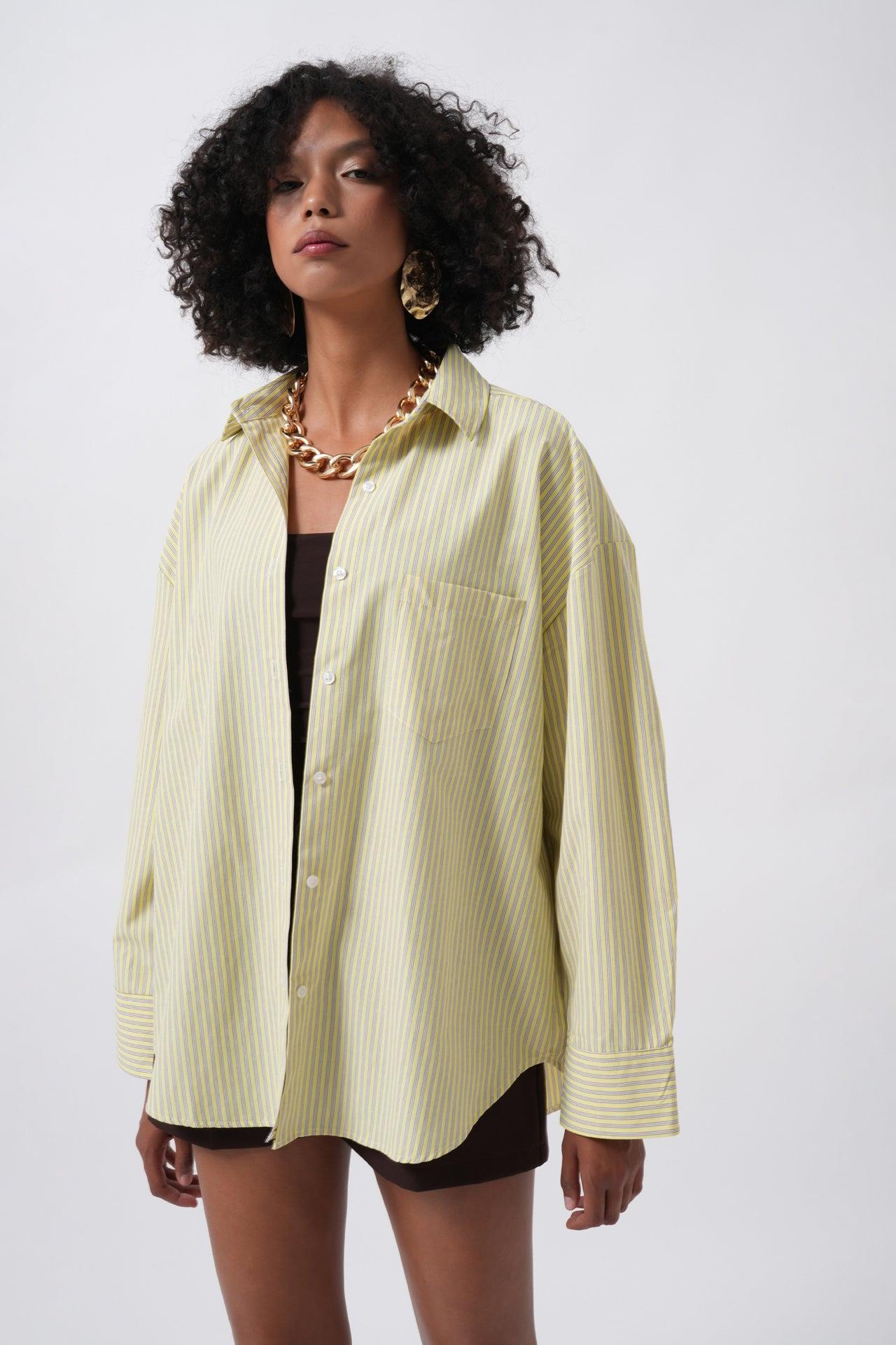 Çizgili Cep Detay Sarı Gömlek
