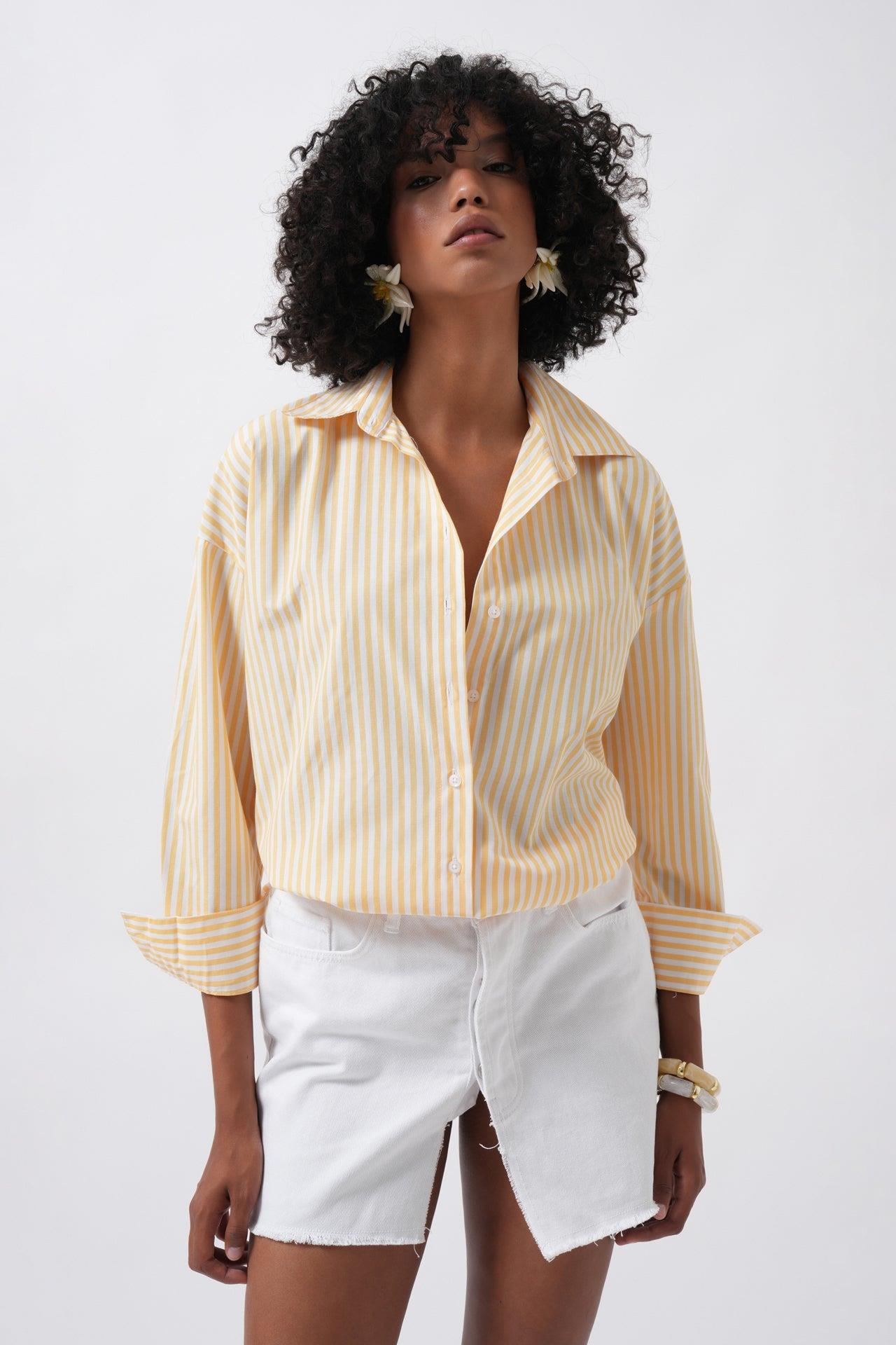 Çizgili Detay Oversize Sarı Gömlek