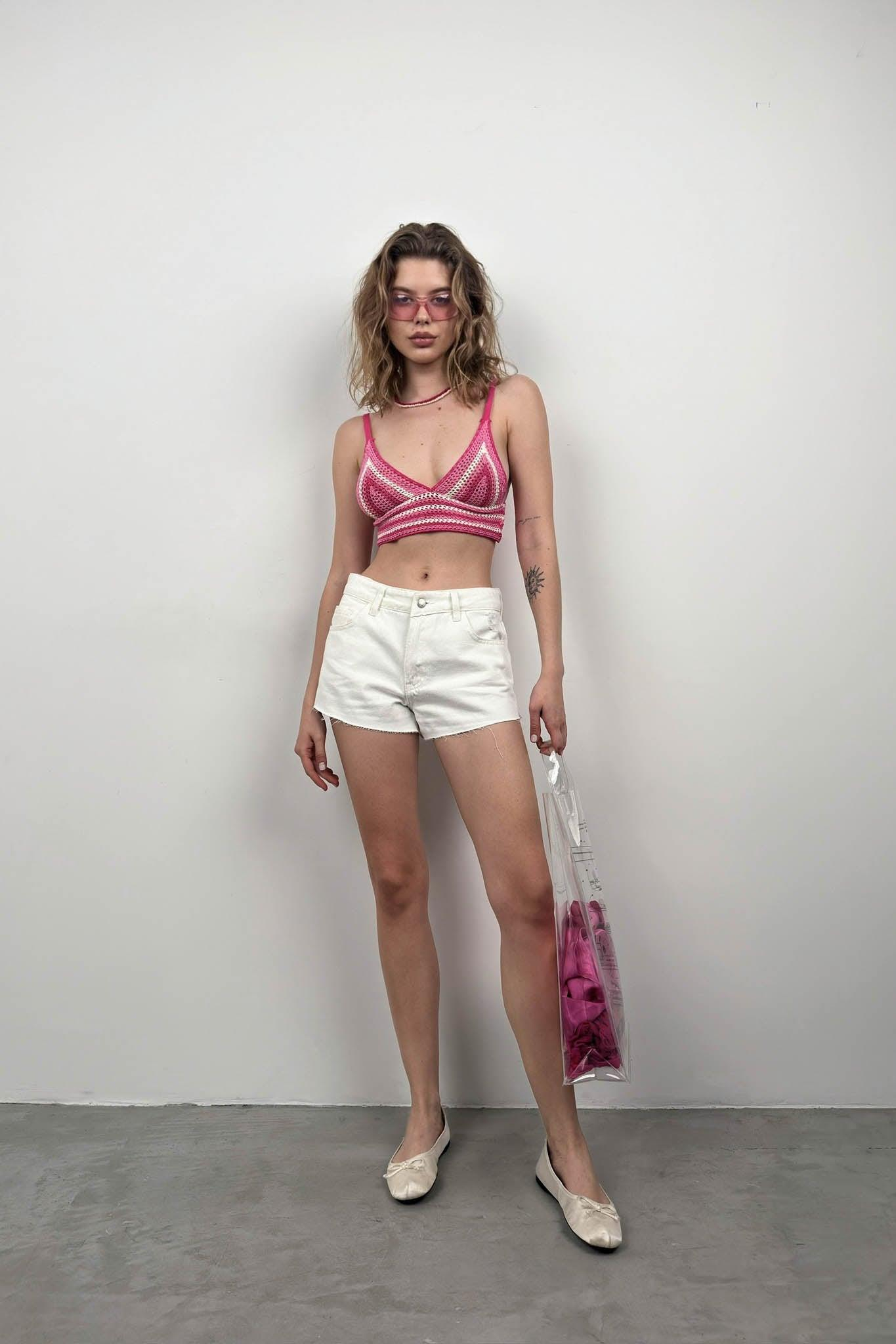 Desenli Örgü Pembe Crop ()