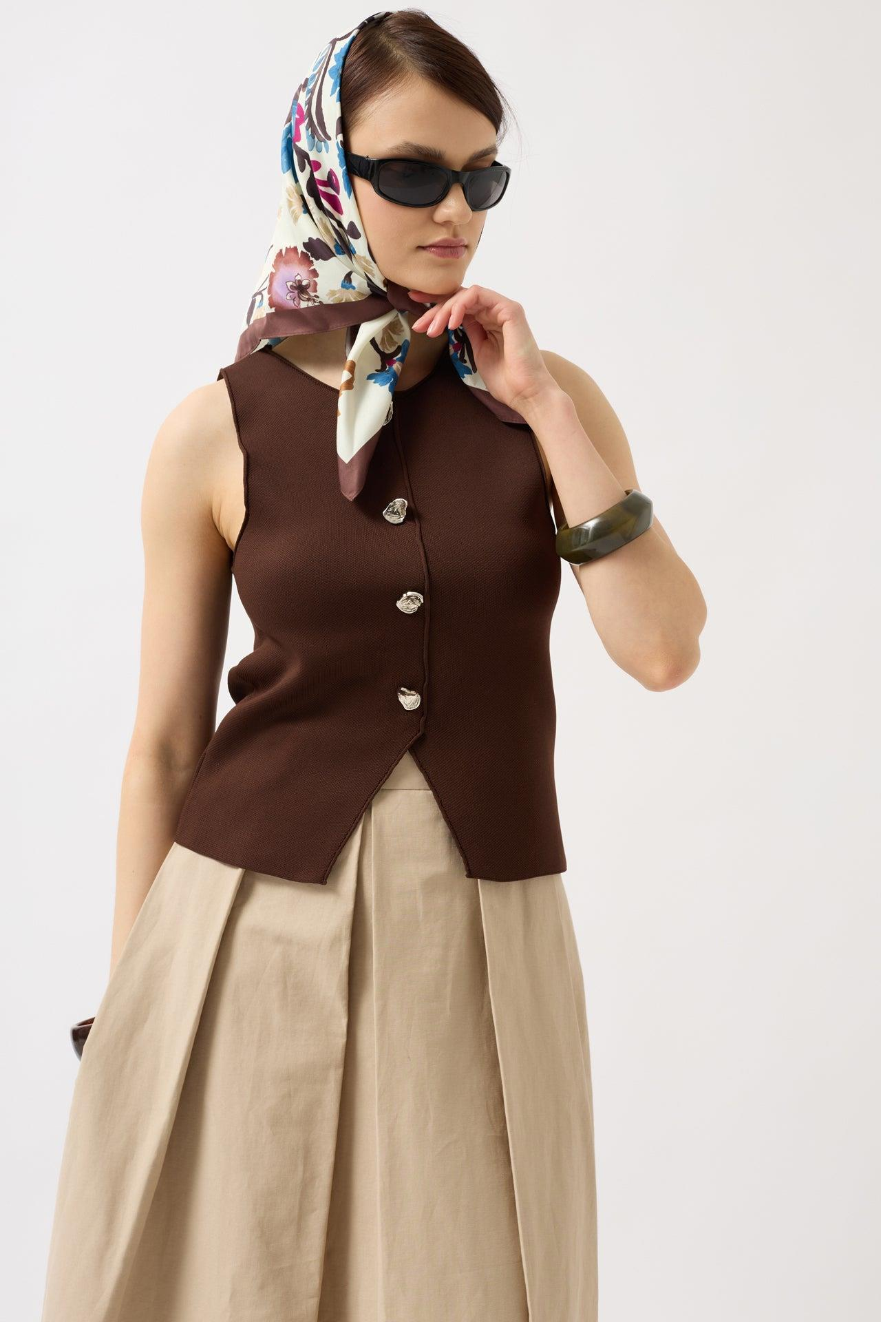 Triko Örgü, Dört Düğmeli, Likralı Ve Esnek Dokulu Yelek Manken Ölçüleri : Göğüs : 83 cm Bel : 61 cm Basen : 92 cm Manken Boy : 174 cm Kilo : 56 kg Manken üzerindeki S bedendir. Ürün İçeriği : 100 Polyester Ürün Kodu : 52212010
