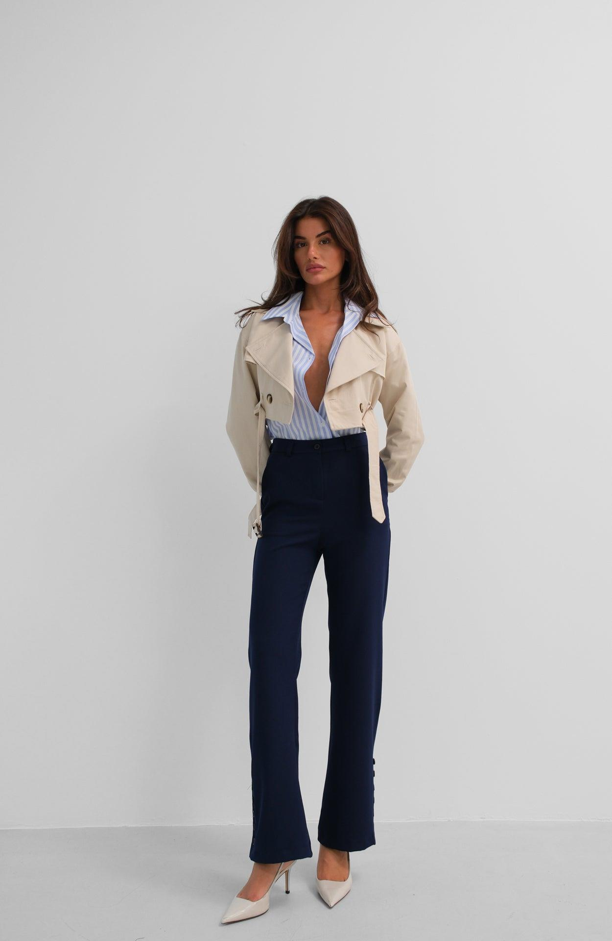 Düğmeli Yırtmaç Detay Lacivert Pantolon ()