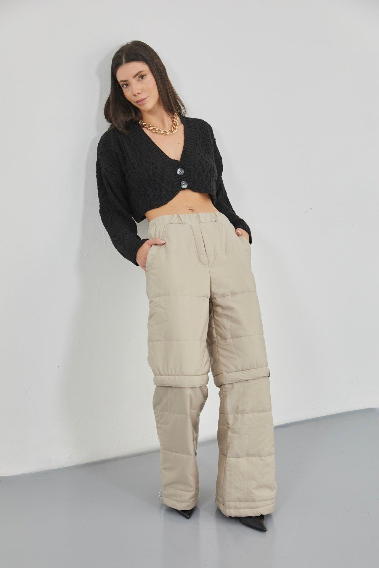 Fermuar Detaylı, Bol Paça, Düşük Bel, Şişme, Kapitone, Pantolon Manken Ölçüleri : Göğüs : 85 cm Bel : 58 cm Basen : 90 cm Manken Boy : 174 cm Kilo : 59 kg Manken üzerindeki S bedendir. Ürün İçeriği : 100 Polyester Ürün Kodu : 24W01013