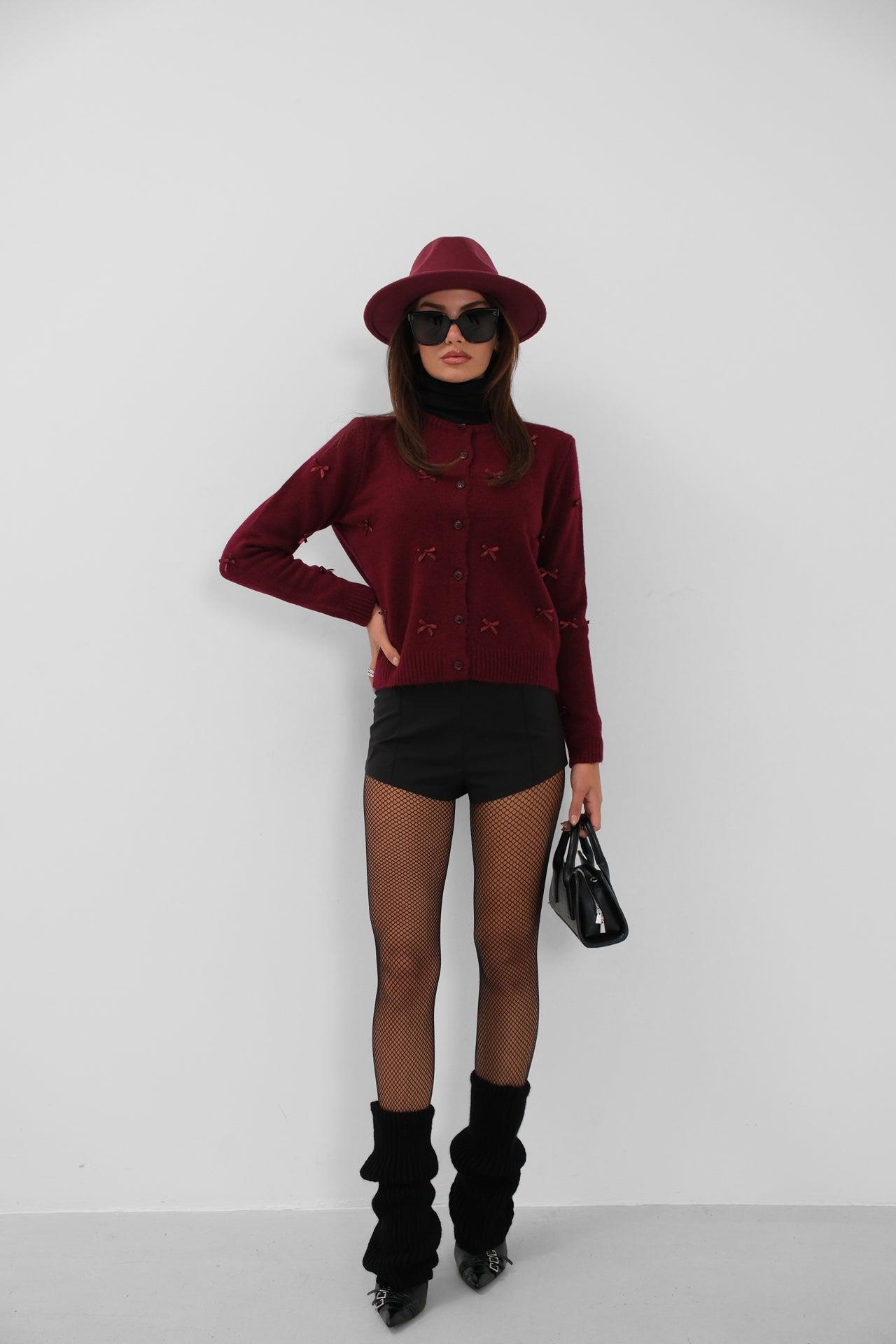 Fiyonk Detaylı Triko Bordo Hırka ()