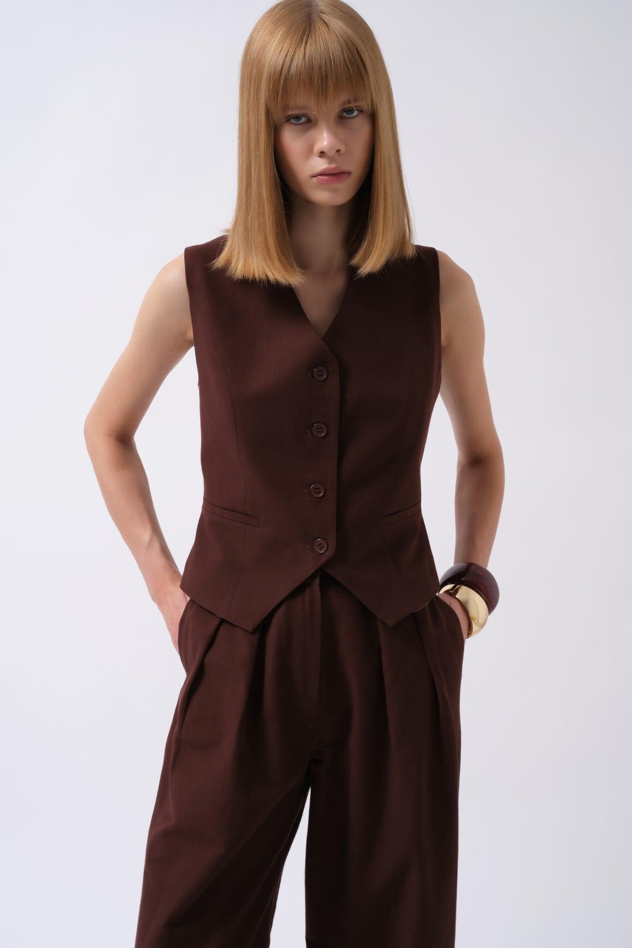 Flato Cepli Düğmeli Kahverengi Yelek ()