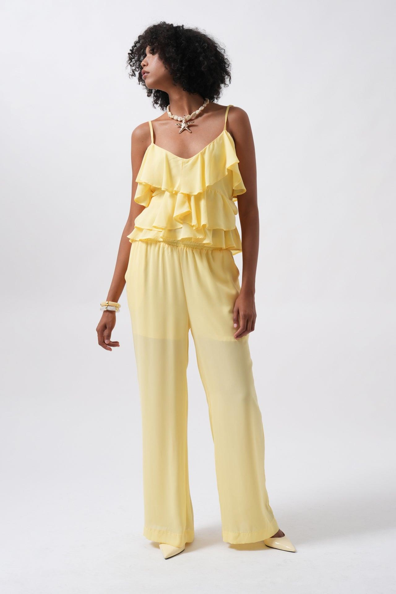 Geniş Paça Astarlı Tül Sarı Pantolon ()