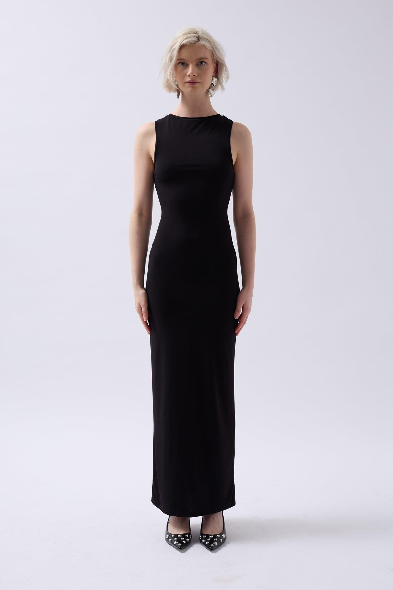 Halter Yaka Maxi Günlük Siyah Elbise ()