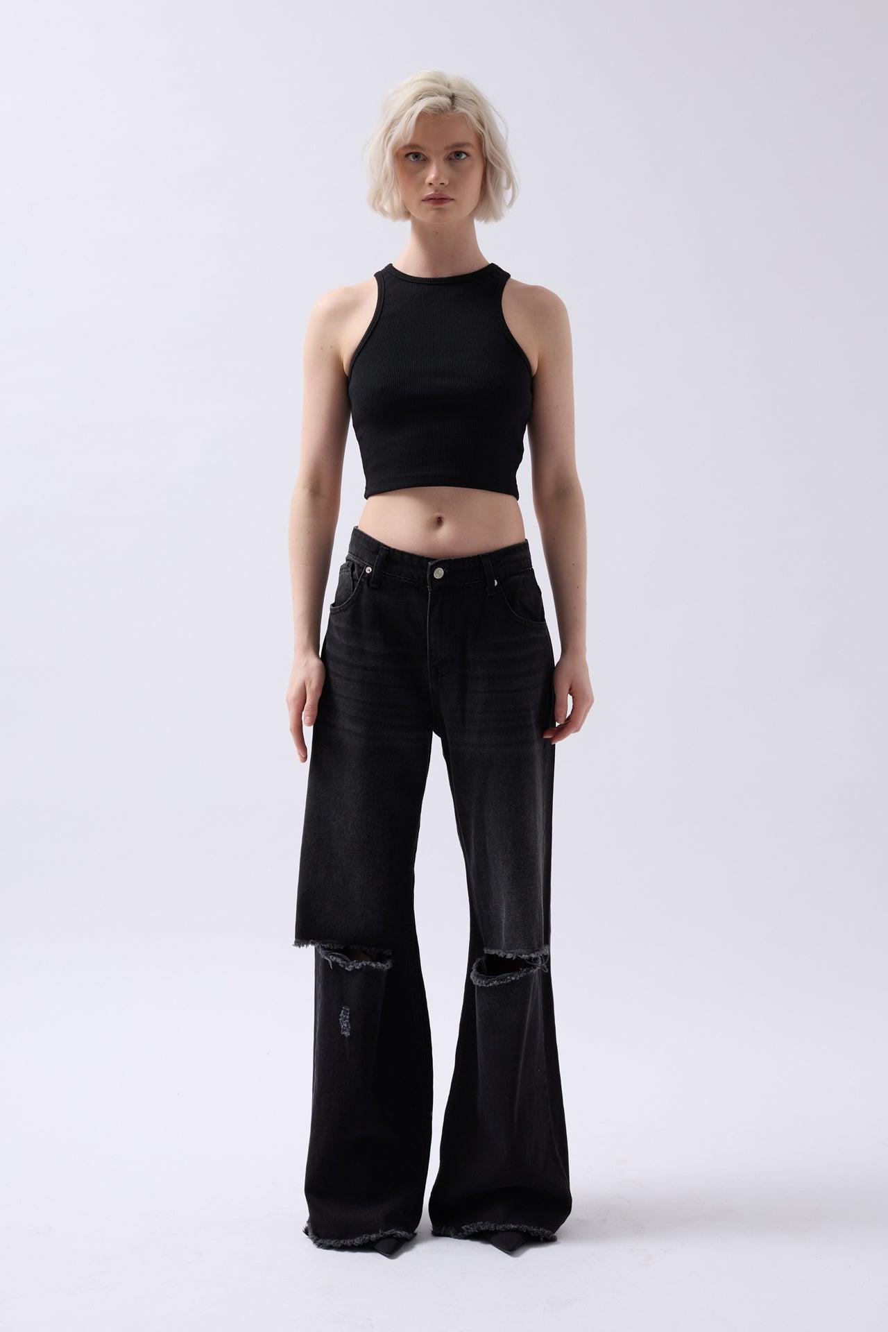 Halter Yaka Siyah Crop