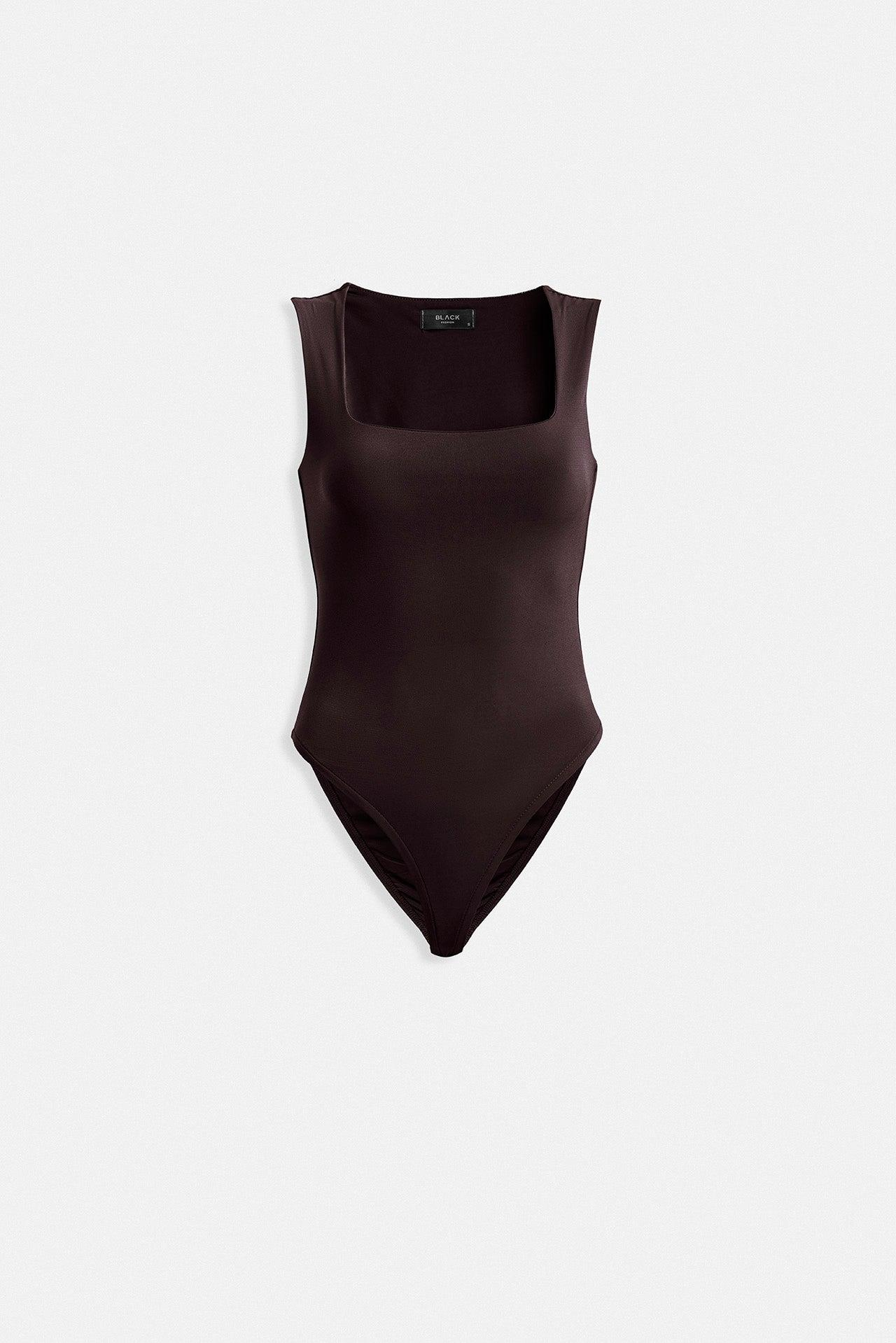 Kare Yaka Kalın Askılı Kahverengi Bodysuit ()