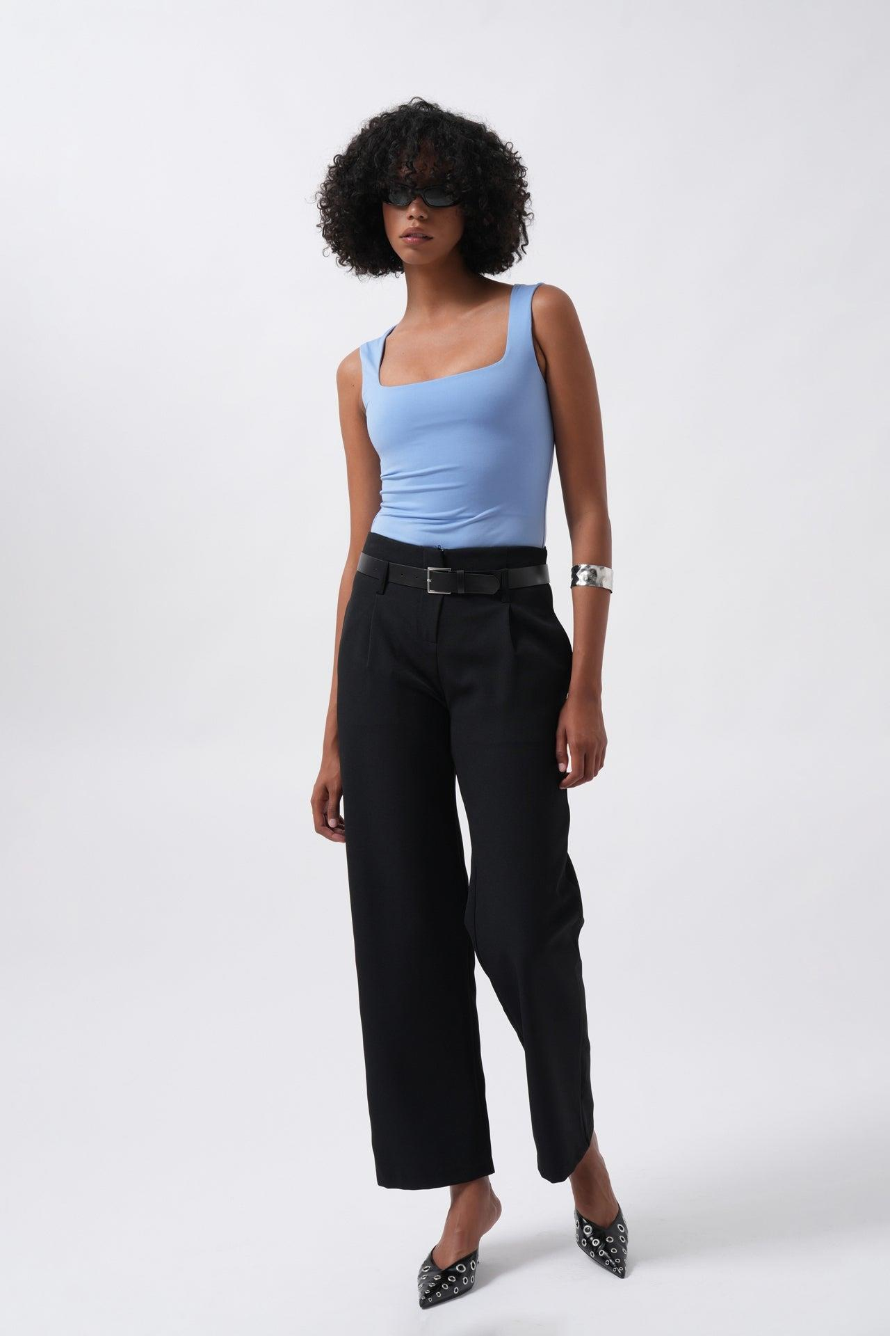 Kemer Detay Siyah Yüksek Bel Pantolon