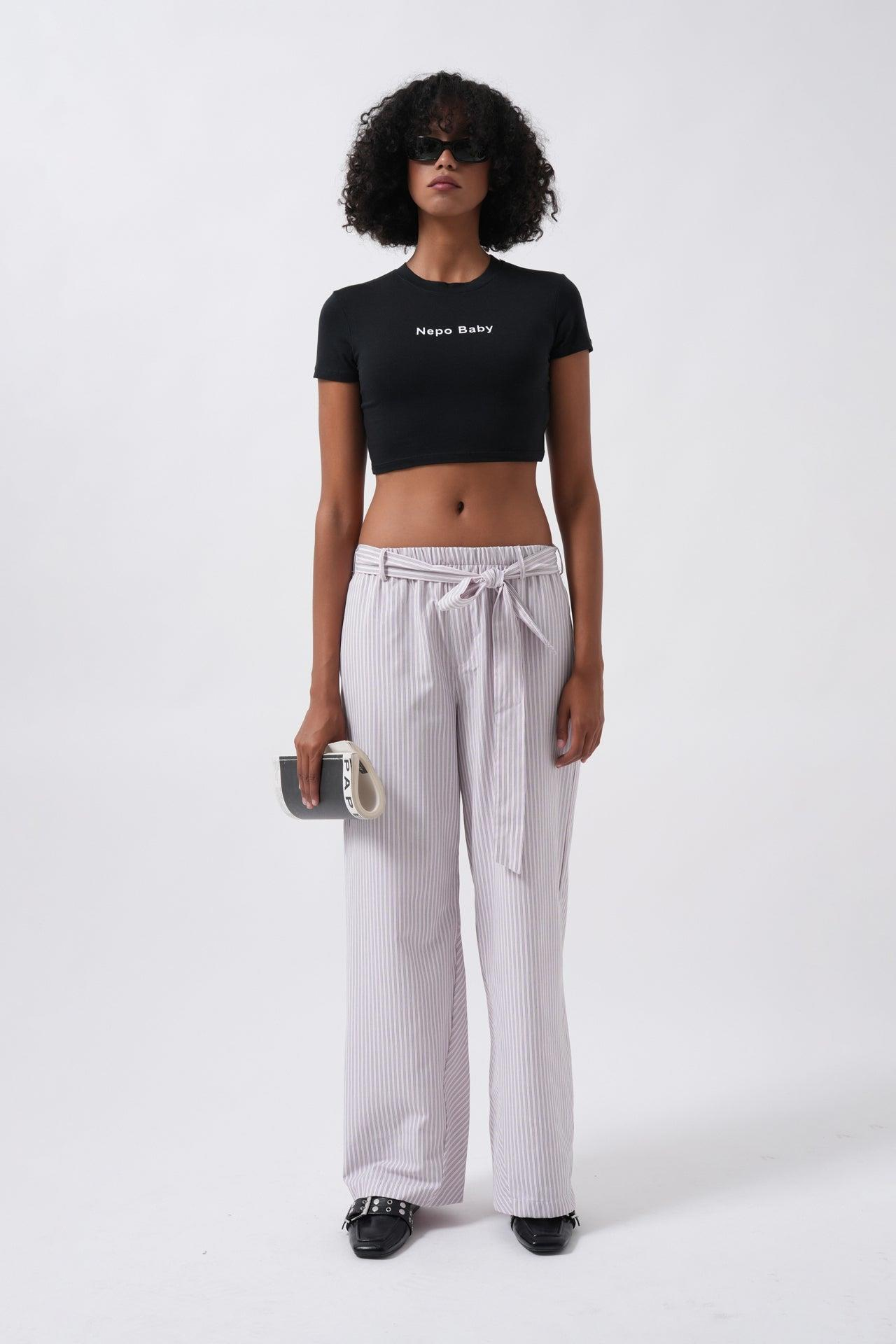 Kuşak Detay Çizgili Pembe Pantolon ()