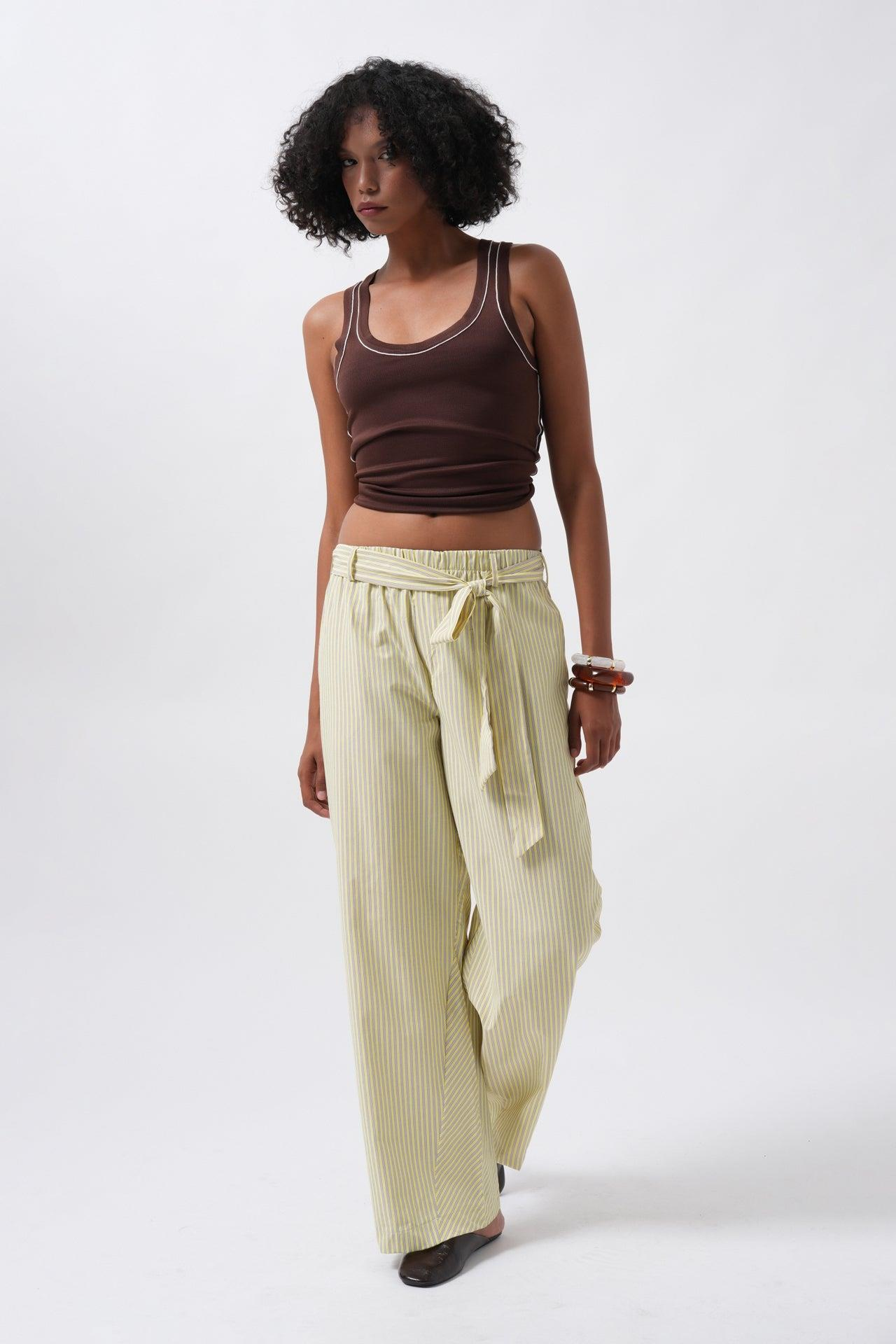 Kuşak Detay Çizgili Sarı Pantolon ()