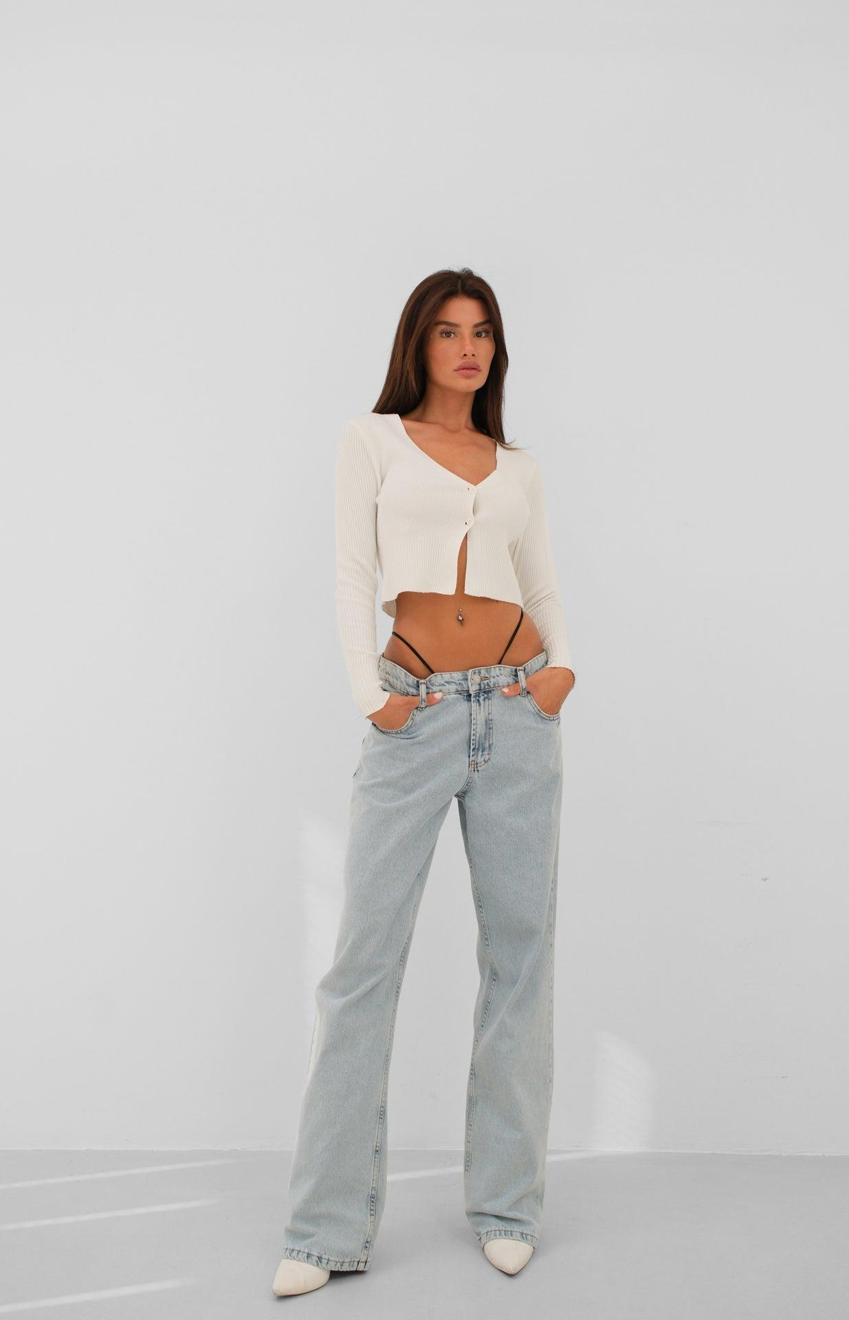 Lastik Detay Açık Mavi Düşük Bel Jean