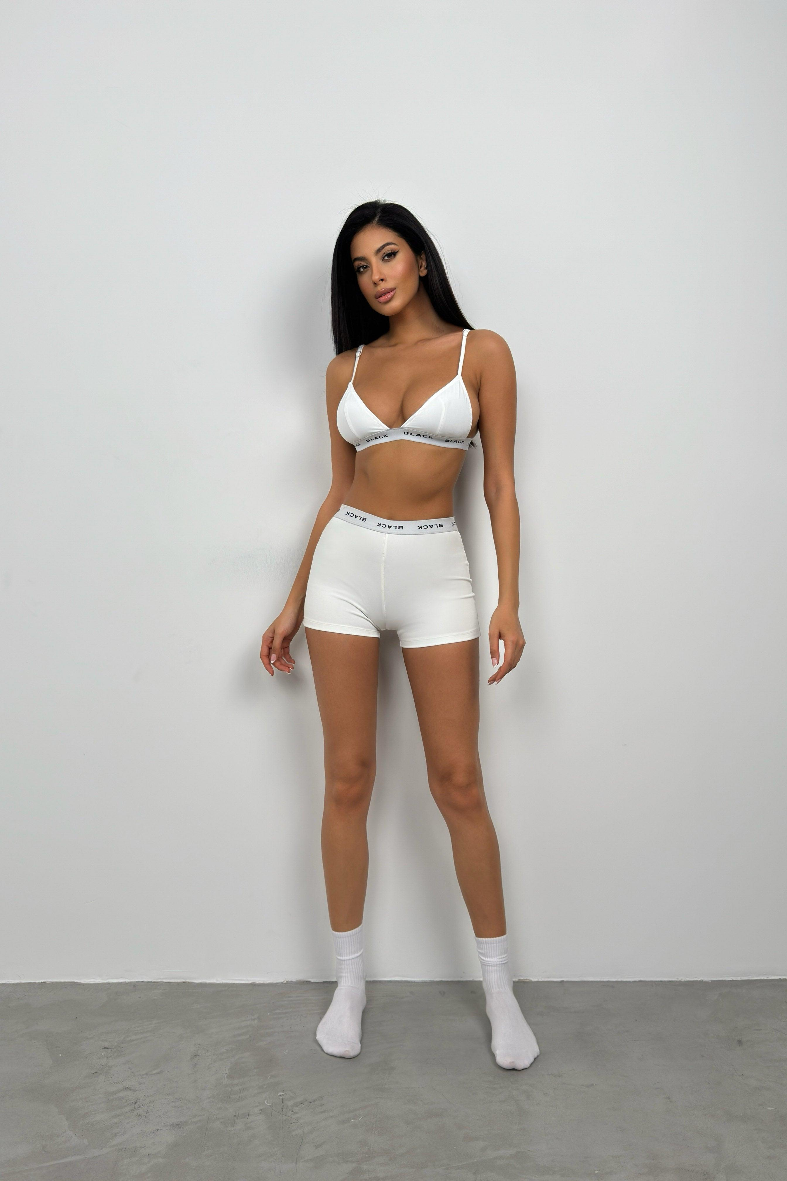 Lastik Detay Beyaz Sporcu Bra