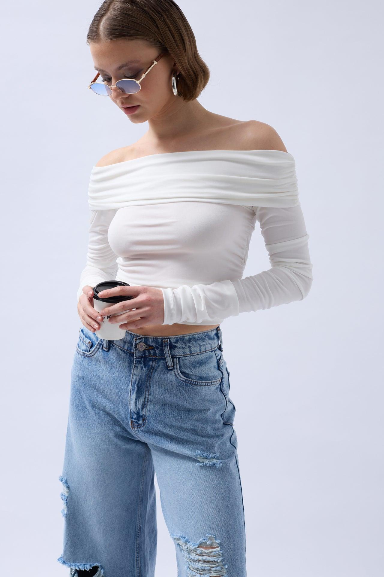 Omuz Dekolte Straplez Beyaz Bluz ()