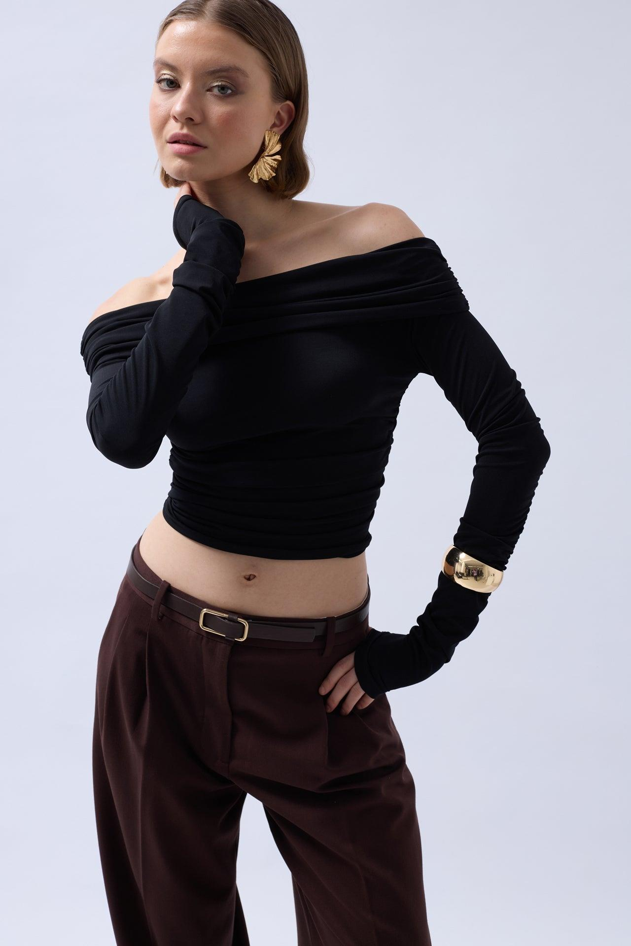 Madonna Yaka, Omuz Dekolteli, Uzun Kollu, Straplez Bluz Manken Ölçüleri : Göğüs : 85 cm Bel : 58 cm Basen : 90 cm Manken Boy : 174 cm Kilo : 59 kg Manken üzerindeki S bedendir. Ürün İçeriği : 95 Polyester 5 Elestan Ürün Kodu : 24W15004