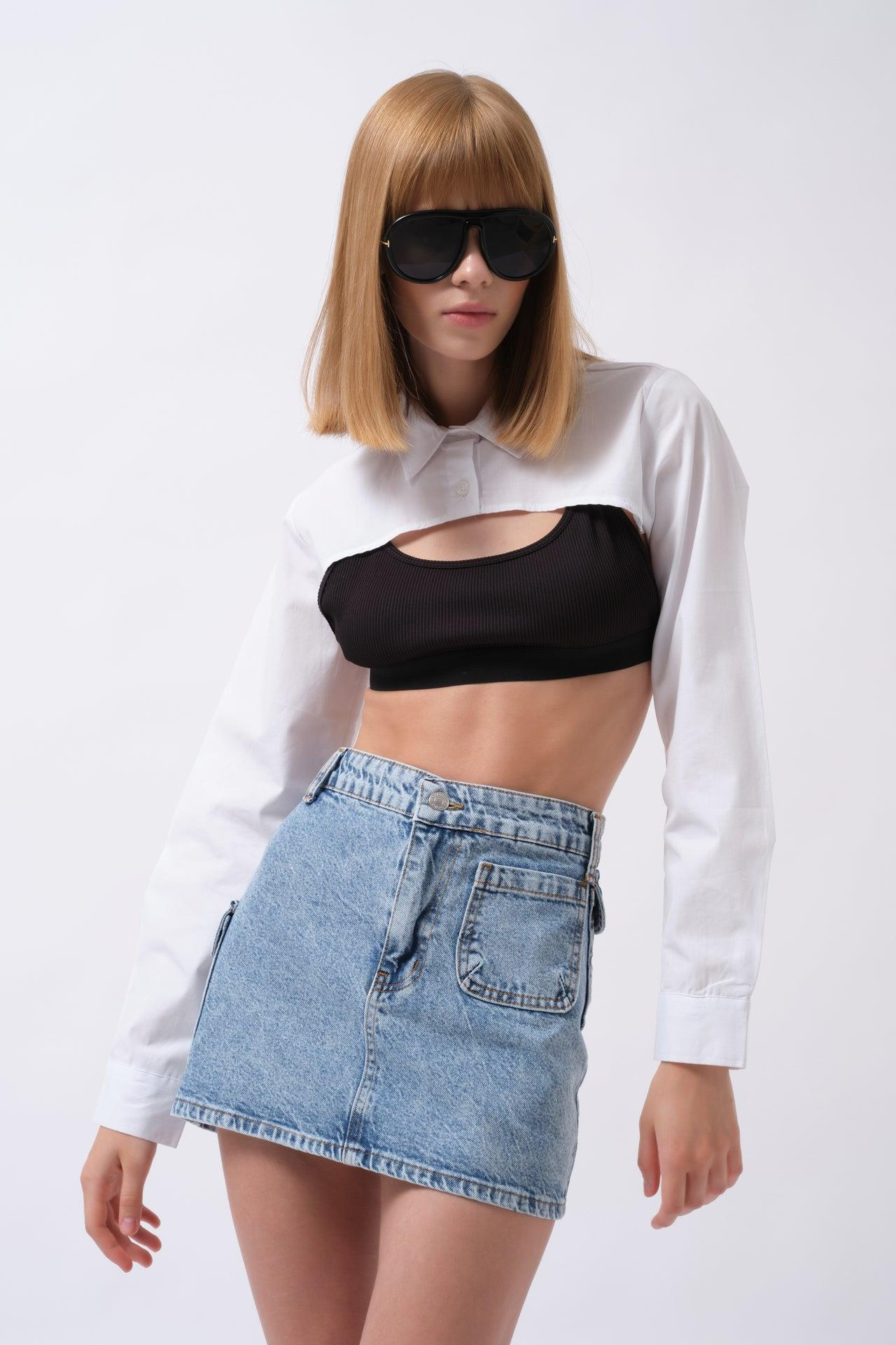 Oval Kesim Beyaz Crop Gömlek