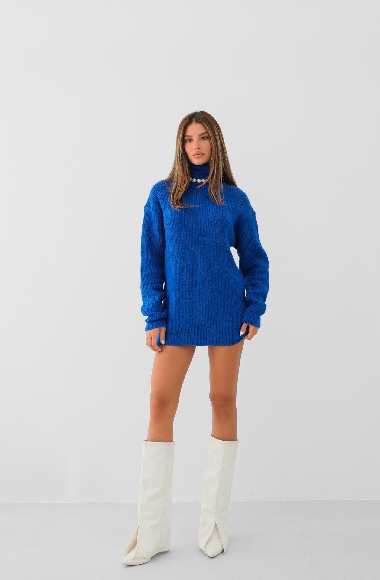 Oversize Balıkçı Yaka Mavi Triko Tunik ()