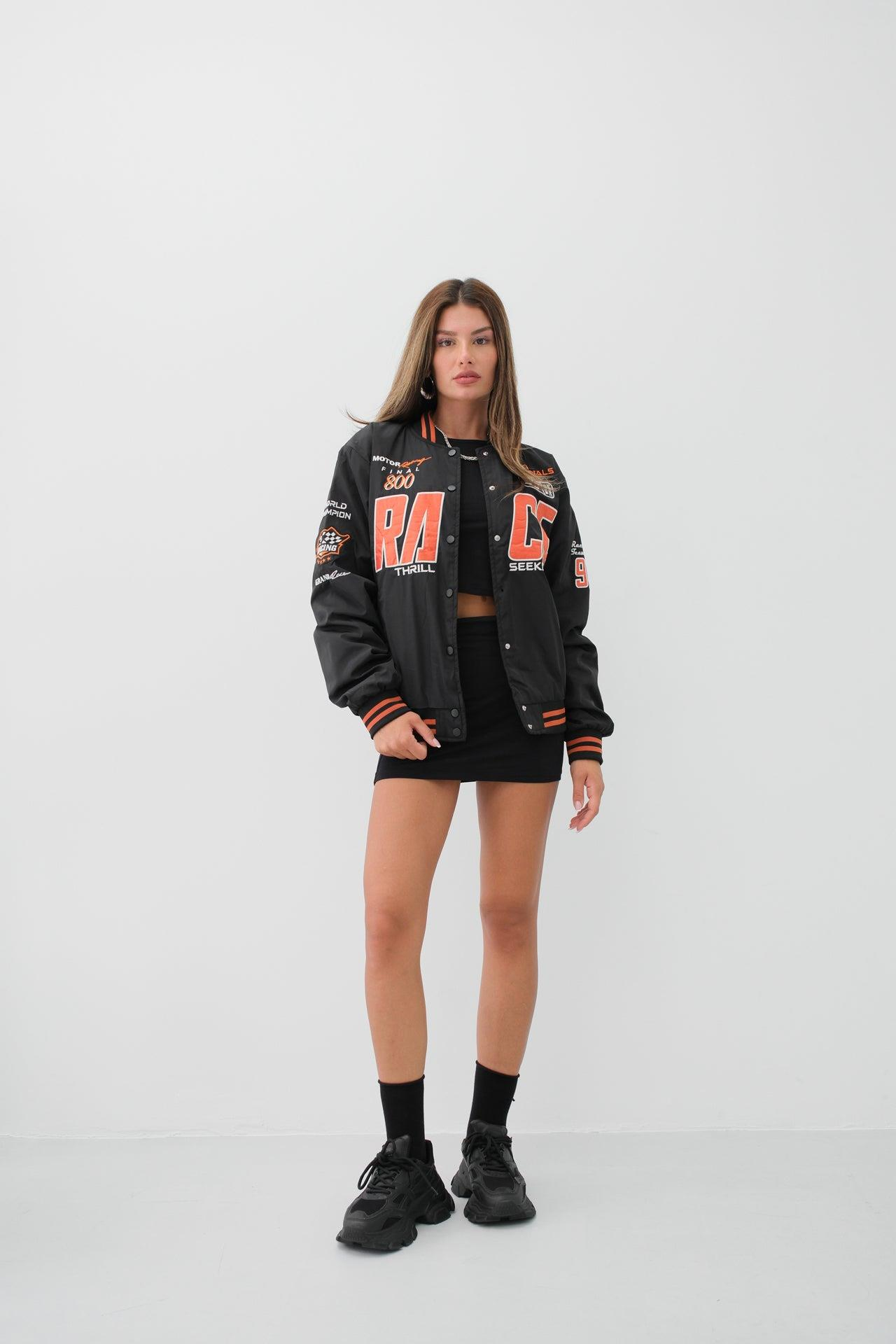 Oversize Nakışlı Siyah Kolej Ceket ()