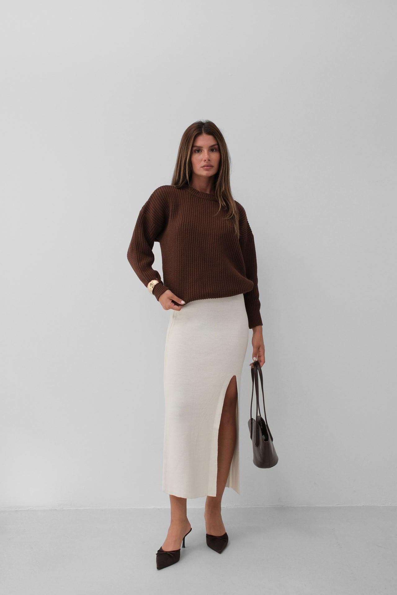Oversize Örgü Kahverengi Kazak ()