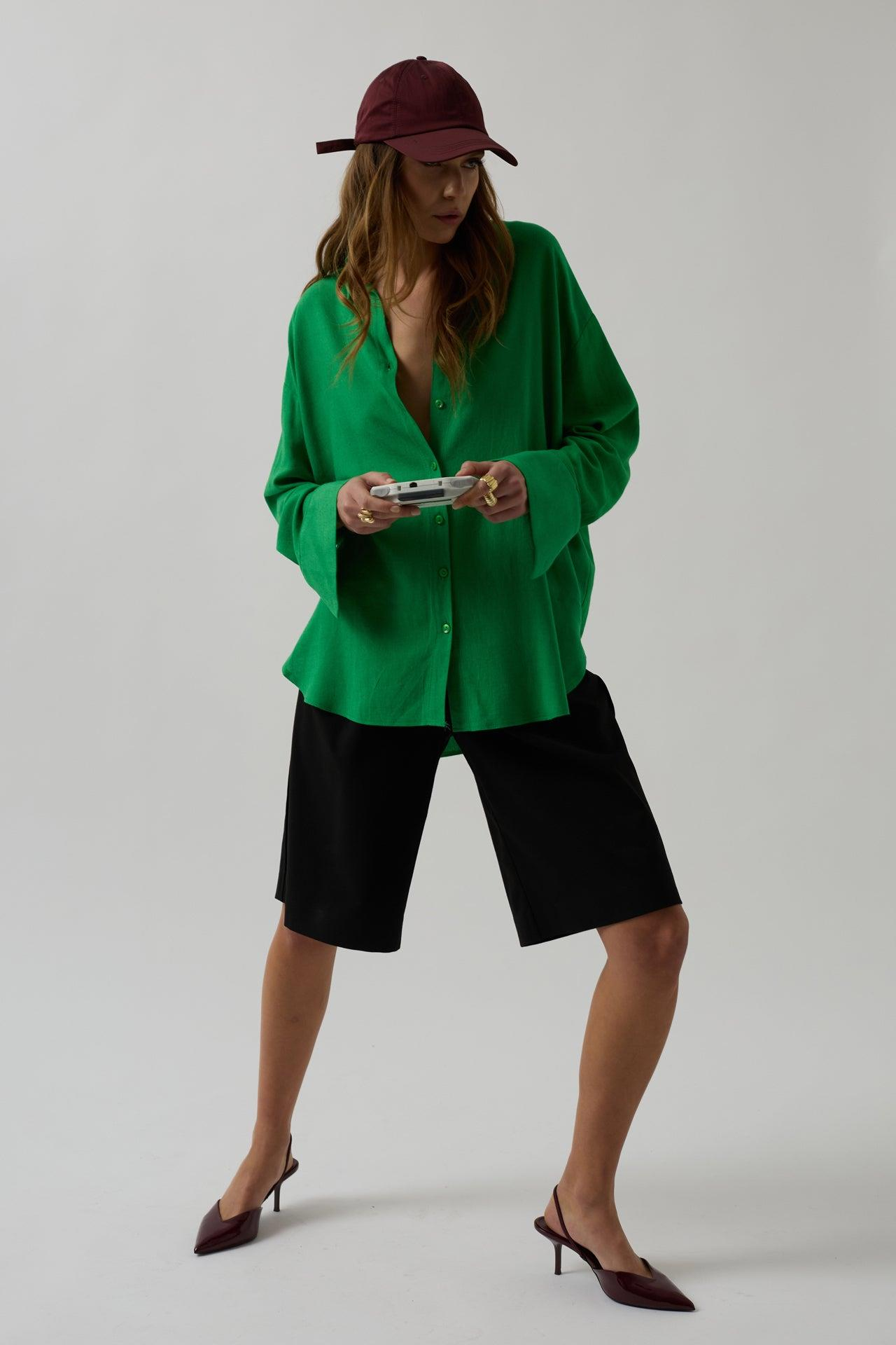 Oversize, Keten, Manşet Detaylı, Uzun Kollu, Düğmeli, Gömlek Manken Ölçüleri : Göğüs : 89 cm Bel : 68 cm Basen : 95 cm Manken Boy : 177 cm Kilo : 57 kg Manken üzerindeki M bedendir. Ürün İçeriği : 100 Pamuk Ürün Kodu : 24S18030