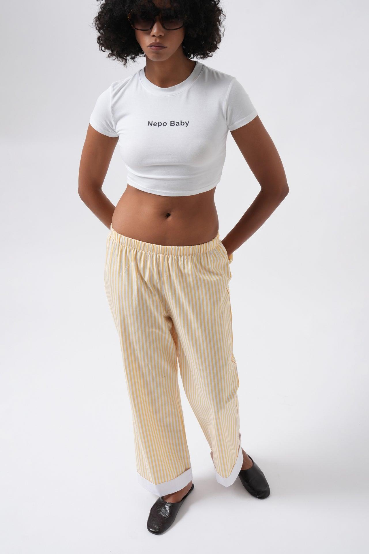 Paça Şerit Detay Çizgili Sarı Pantolon ()