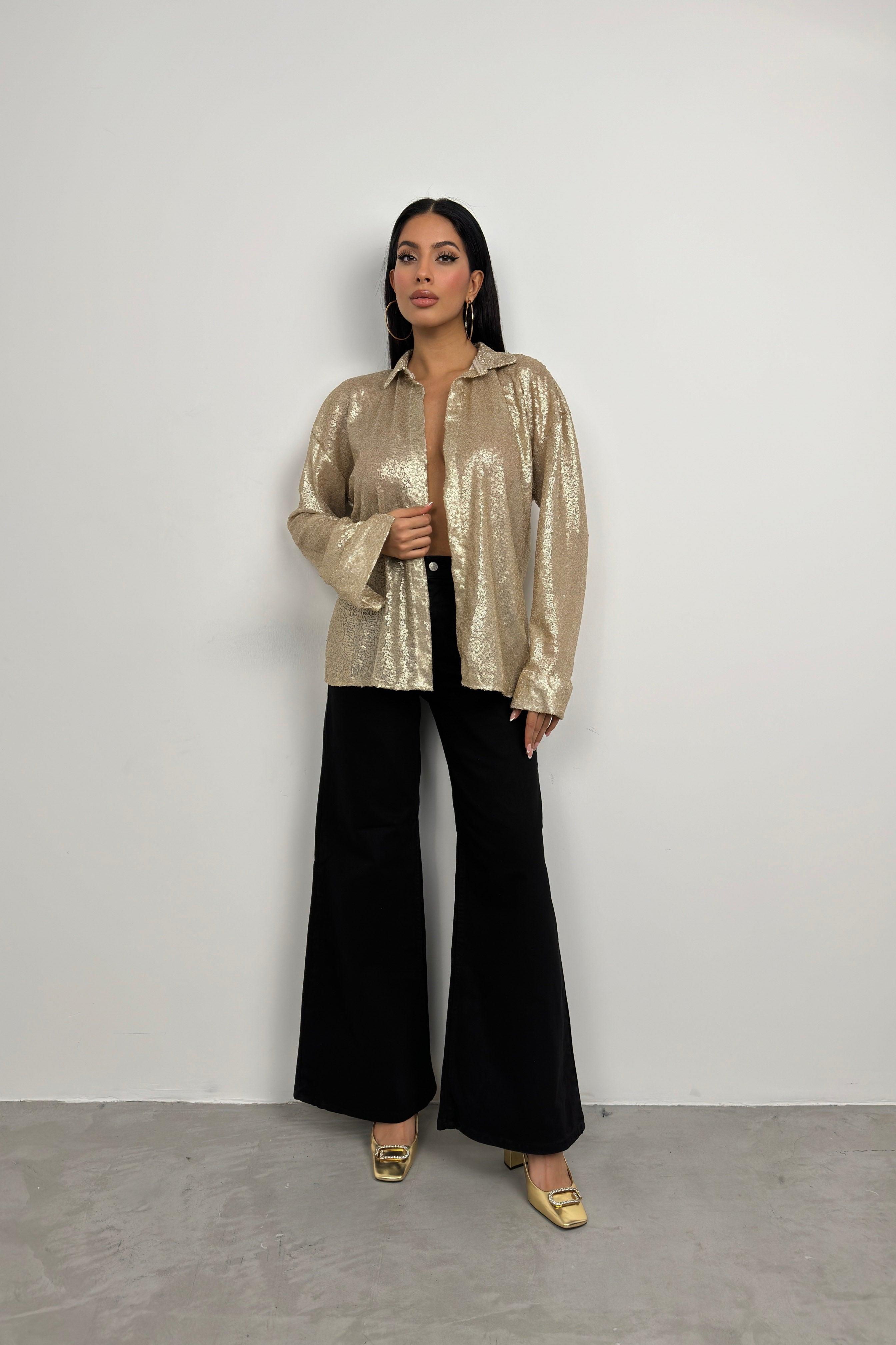 Payetli, Uzun Kollu, Oversize, Gömlek Yaka, Önü Düğmeli, Normal Boy, Gömlek Manken Ölçüleri : Göğüs : 89 cm Bel : 68 cm Basen : 95 cm Manken Boy : 177 cm Kilo : 57 kg Manken üzerindeki M bedendir. Ürün İçeriği : 100 Polyester Ürün Kodu : 23W18008