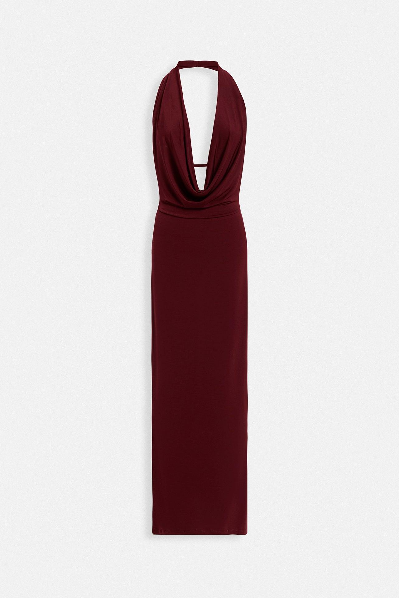 Şal Yaka Dekolte Maxi Bordo Elbise ()