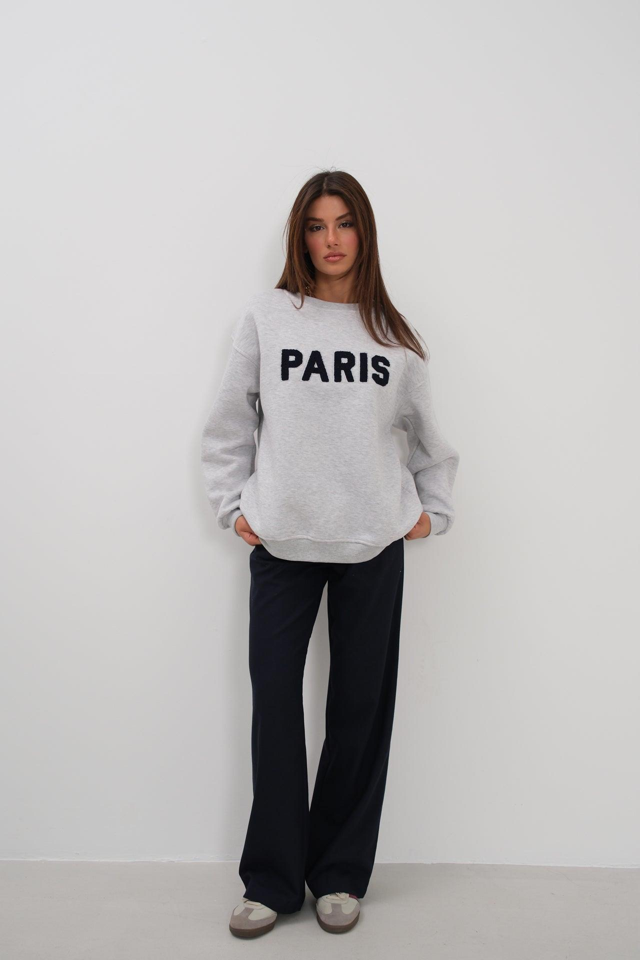 Sıfır Yaka Şardonlu Gri Sweatshirt ()