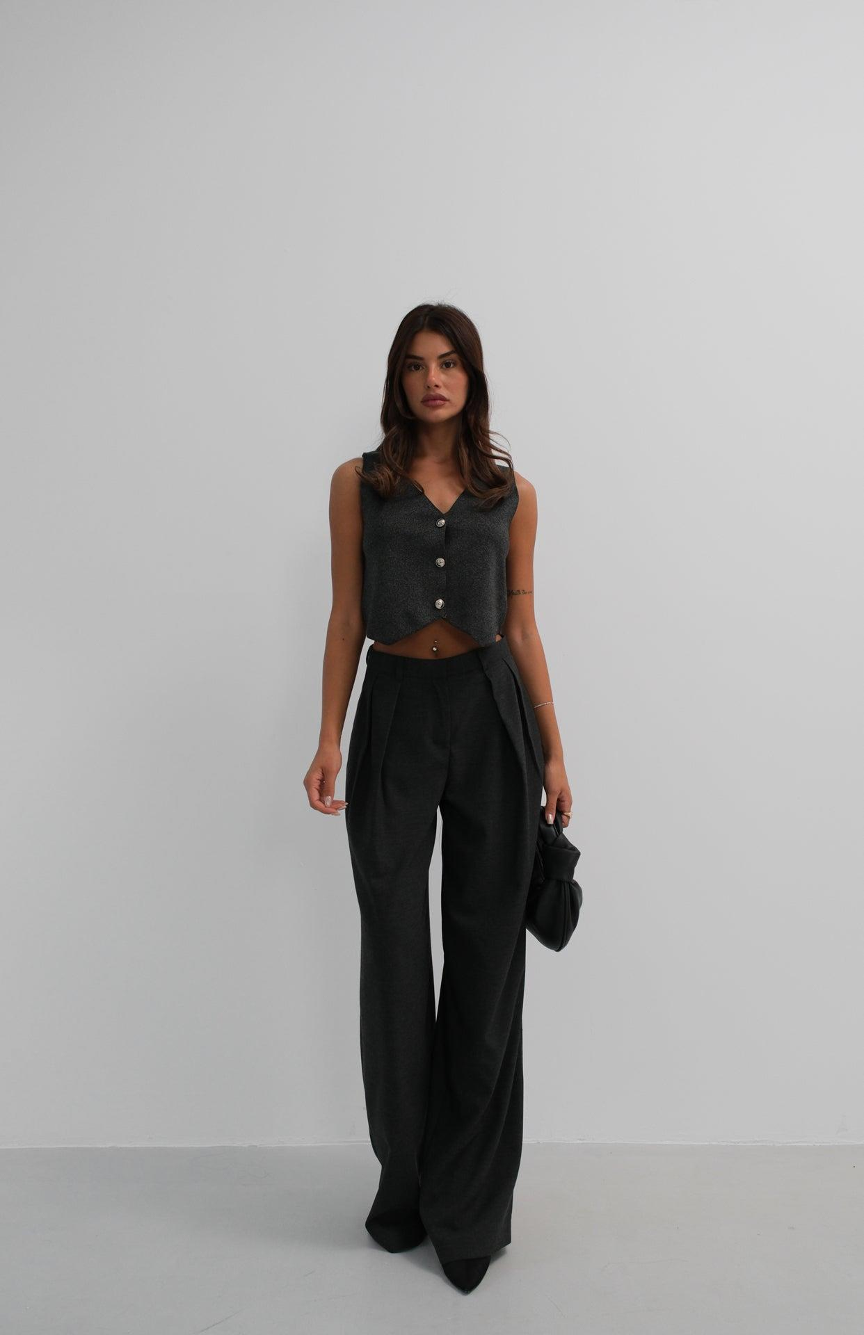 Simli, Kalın Askılı, Düğme Detay, Triko Yelek Manken Ölçüleri : Göğüs : 85 cm Bel : 58 cm Basen : 90 cm Manken Boy : 174 cm Kilo : 59 kg Manken üzerindeki S bedendir. Ürün İçeriği : 100 Polyester Ürün Kodu : 24W12014