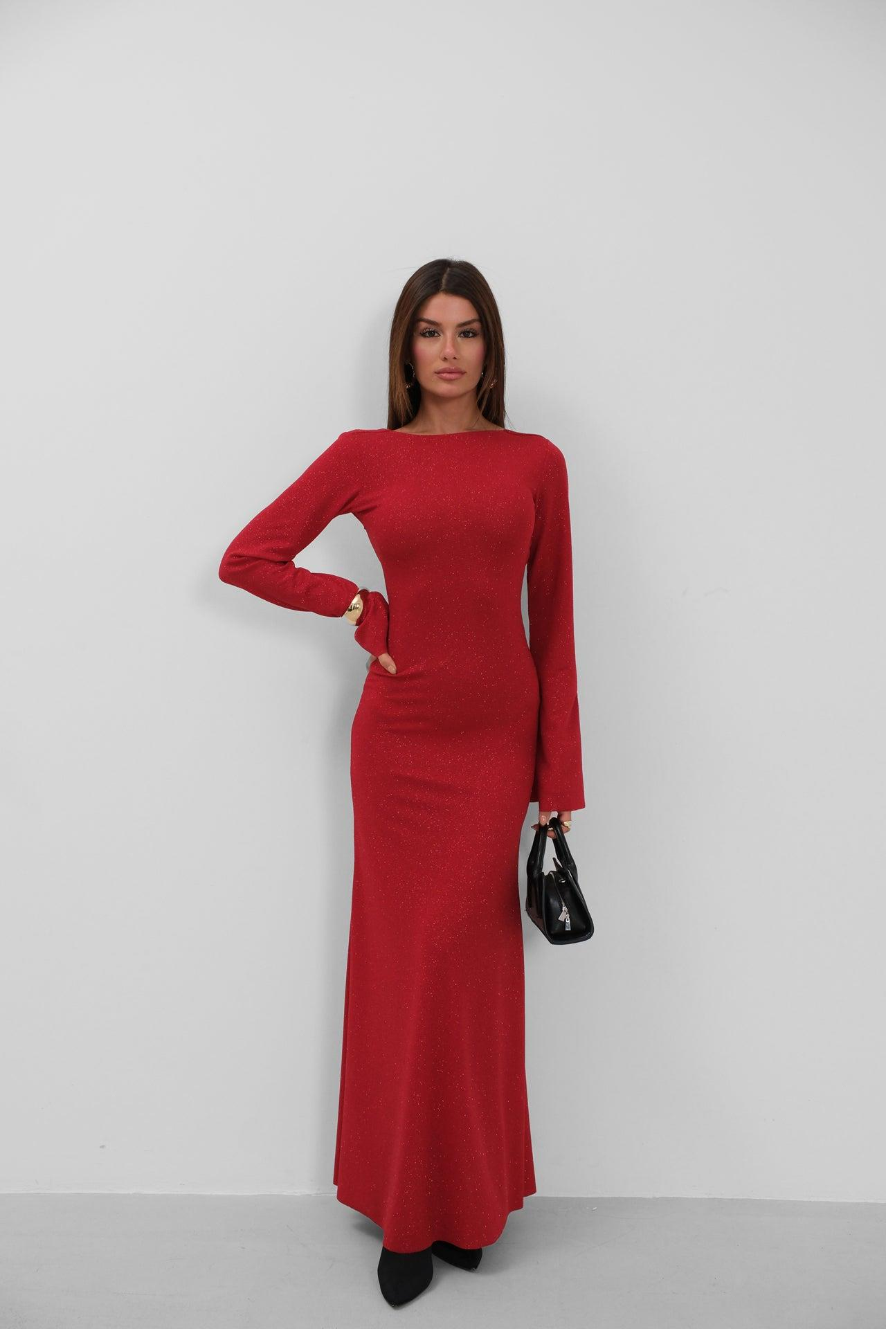 Sırt Dekolteli Maxi Kırmızı Elbise ()