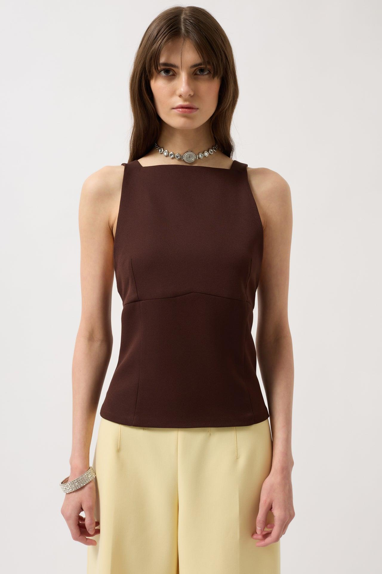 Sırt Kurdele Detay Kahverengi Bluz ()