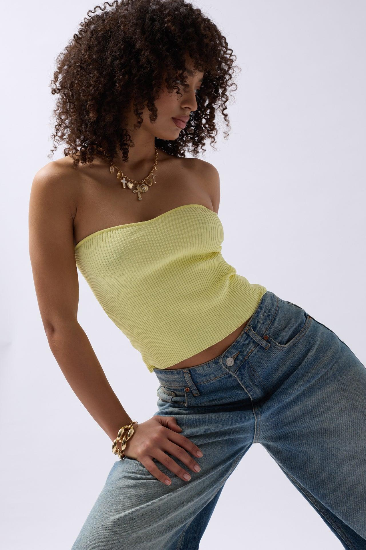 Straplez Dokulu Sarı Crop ()