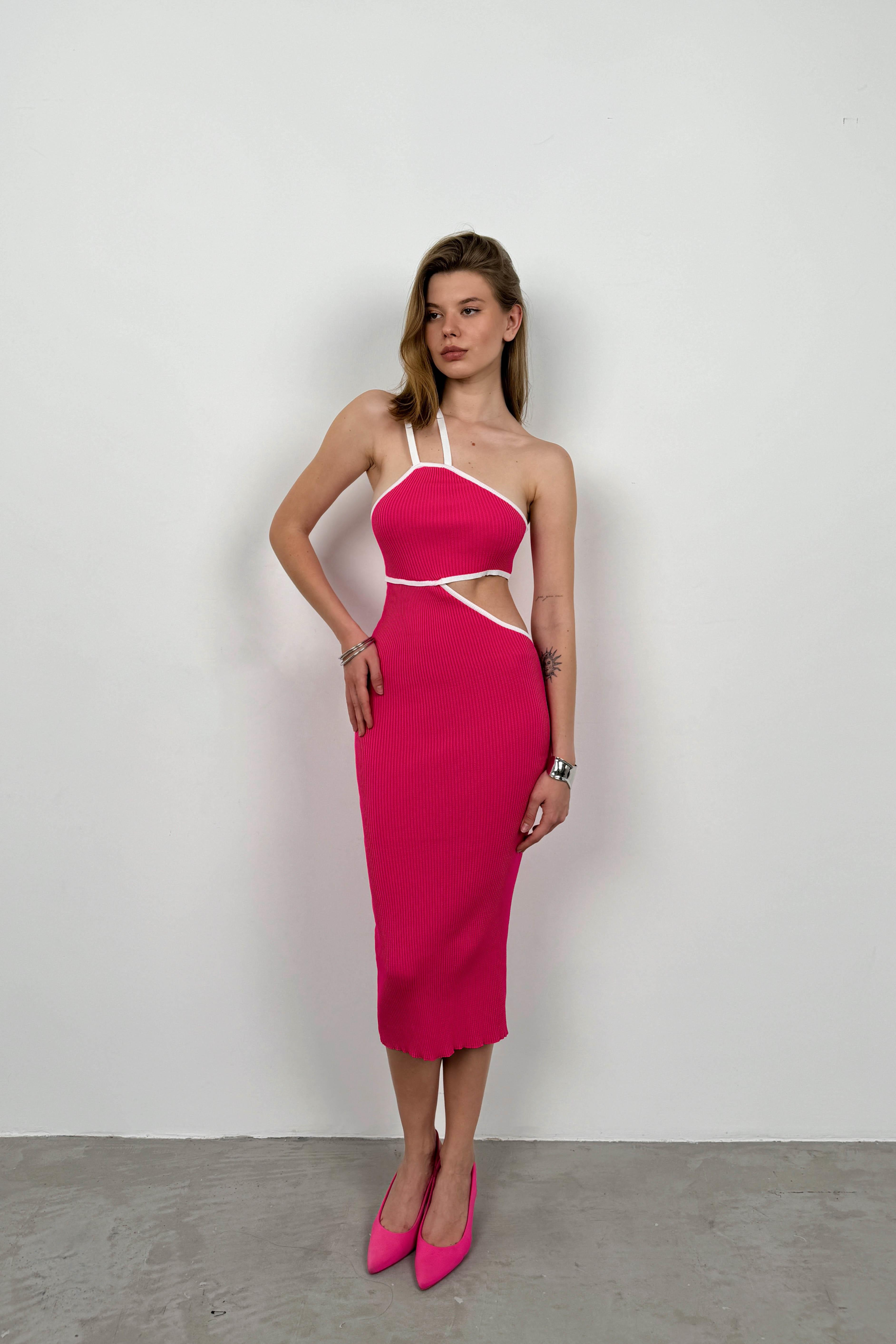 Tek Omuz Bel Dekolteli Fuşya Elbise